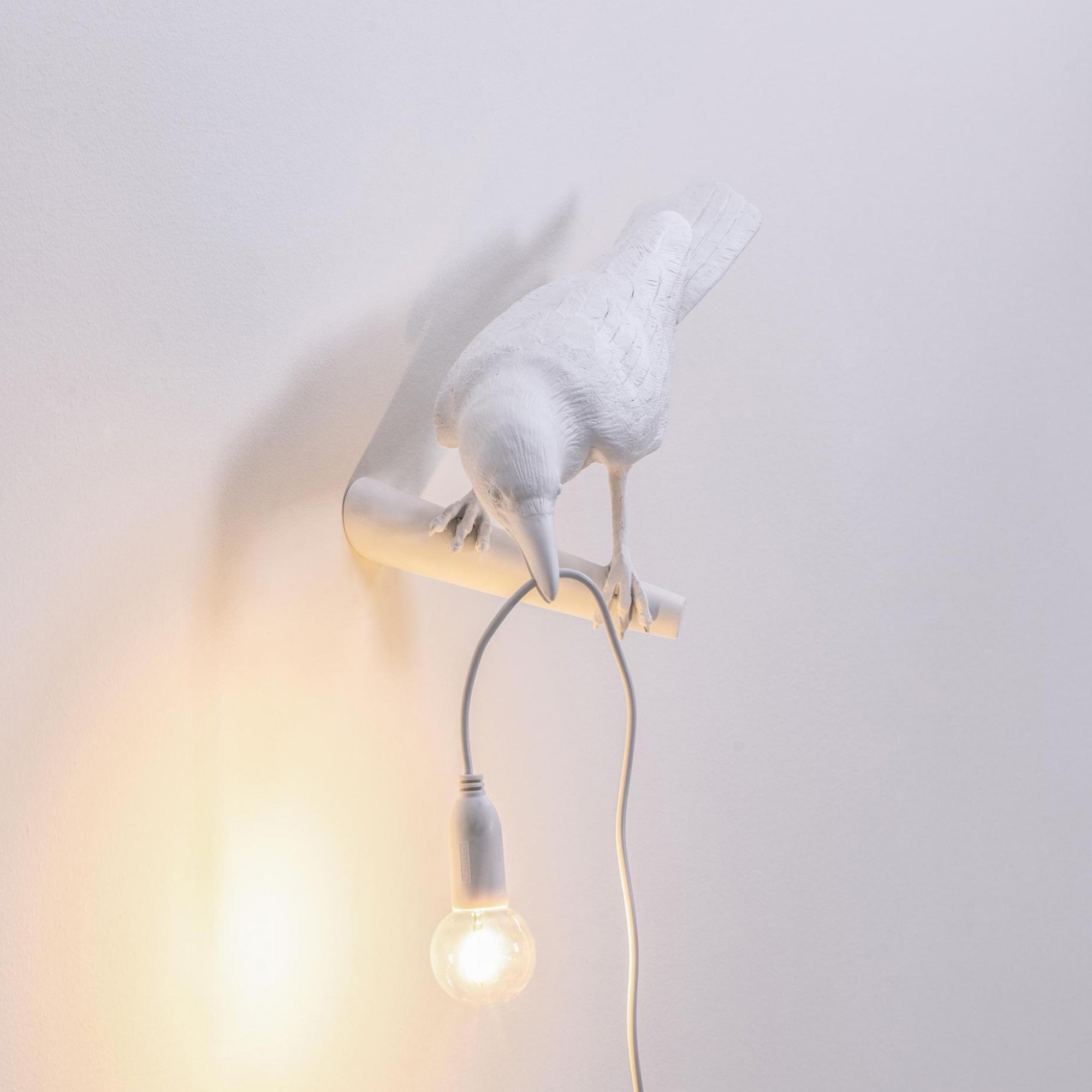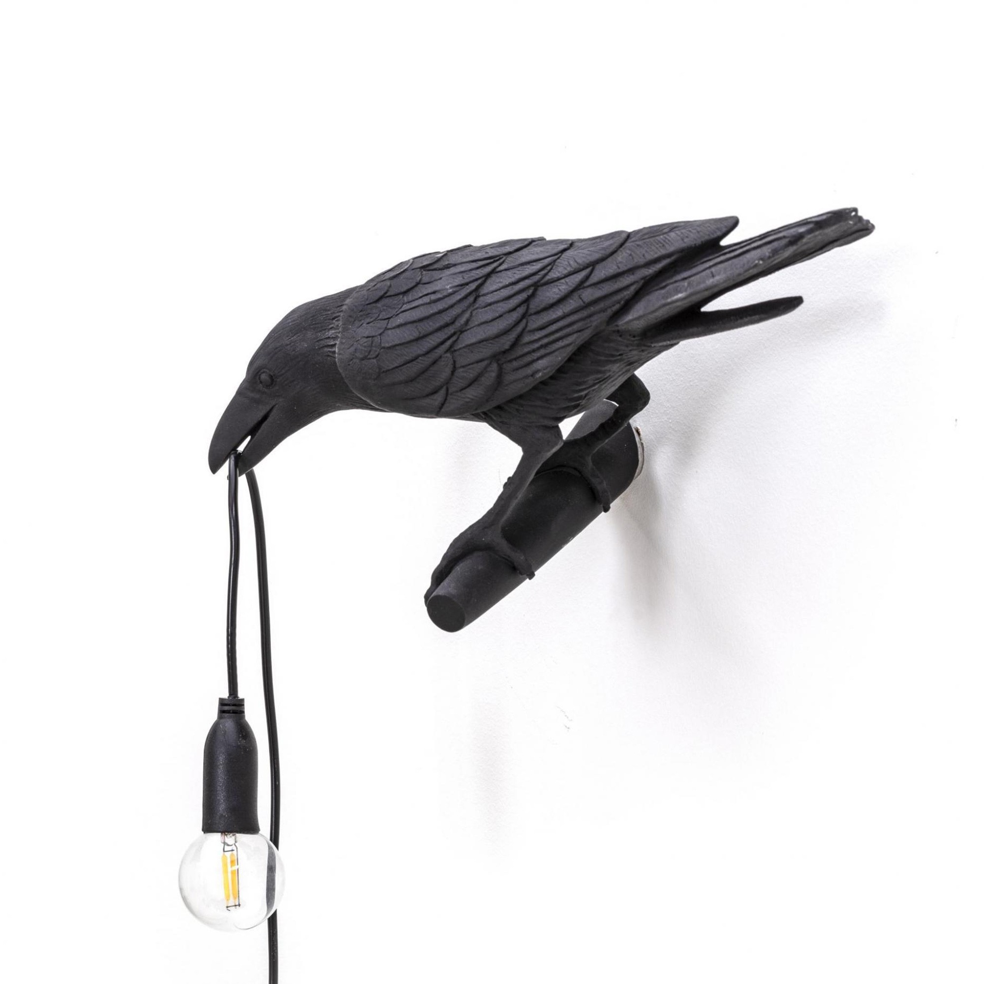 Коллекция настольных и настенных светильников Bird представлена в виде ворон. В клюве птица держит свисающий провод с лампочкой. Светильник изготавливается из полимера в черном или белом цвете. Подробности о данной модели уточняйте у менеджеров или в PDF инструкции.