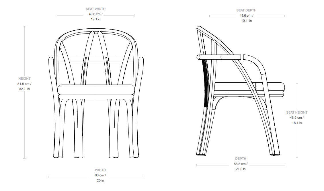 Визуальный язык дизайна вдохновлён органическими формами: ножки, подлокотники и спинка напоминают контуры дерева, а кастомная обивка украшена ботаническим принтом, созданным по мотивам фрески Леонардо да Винчи.