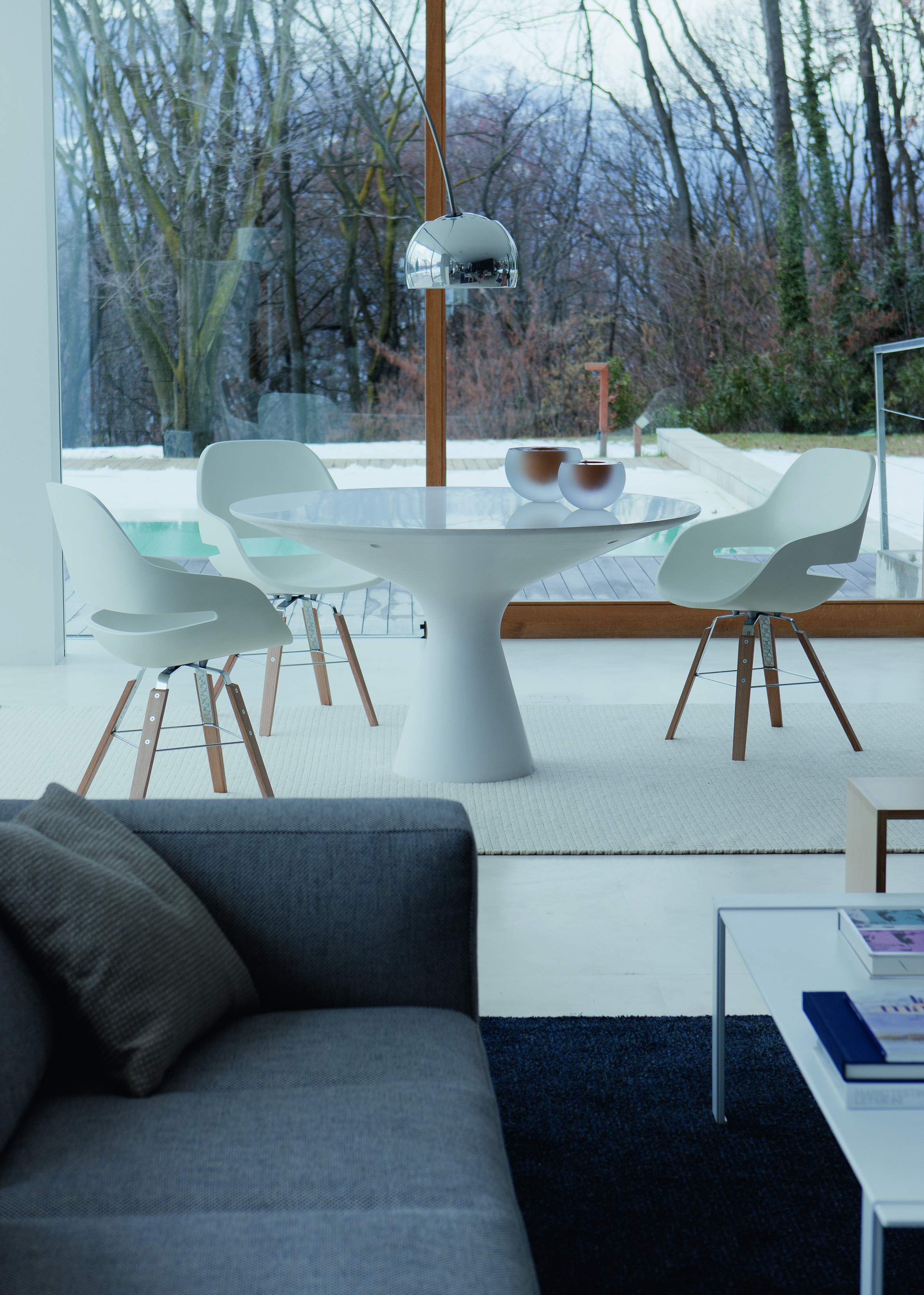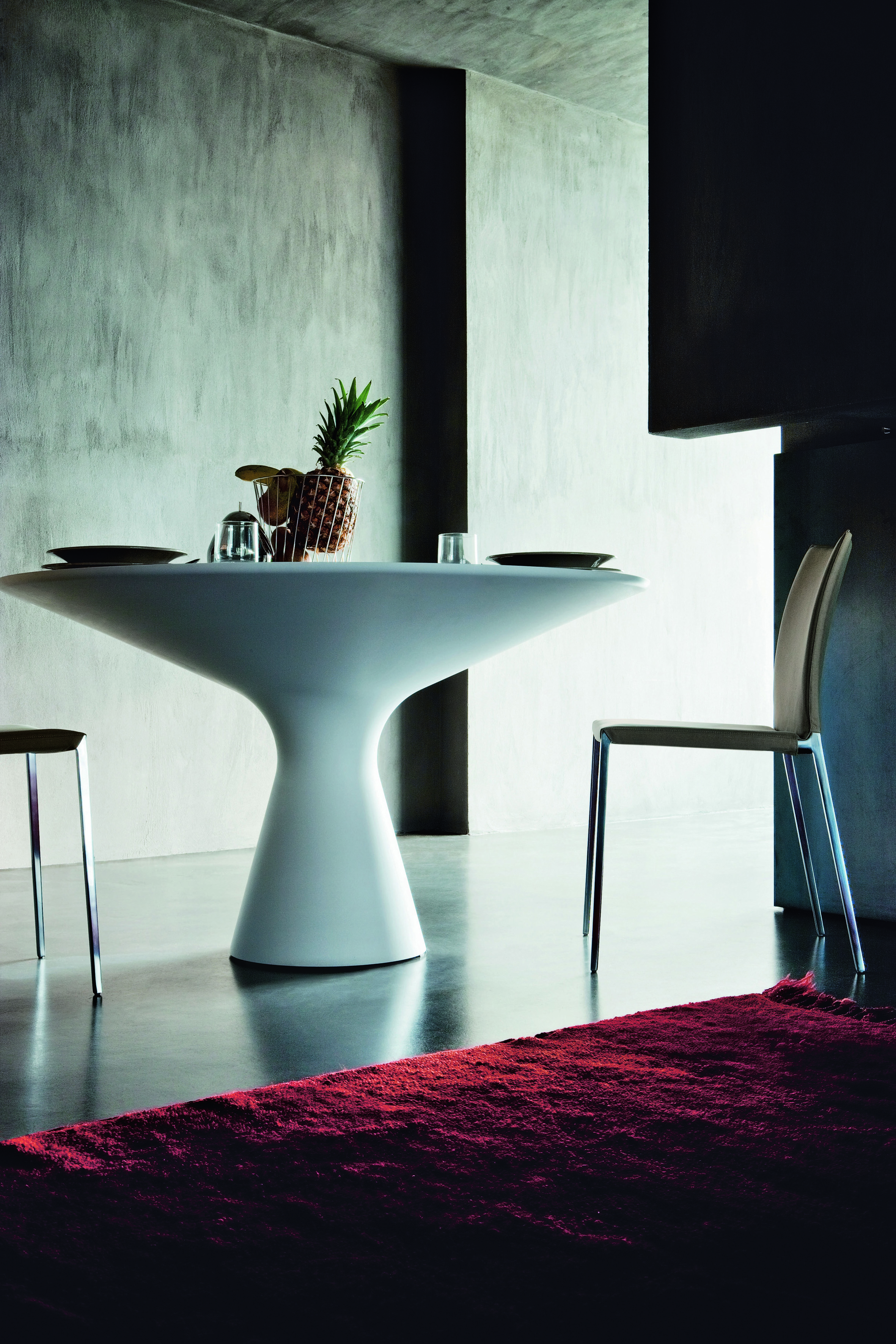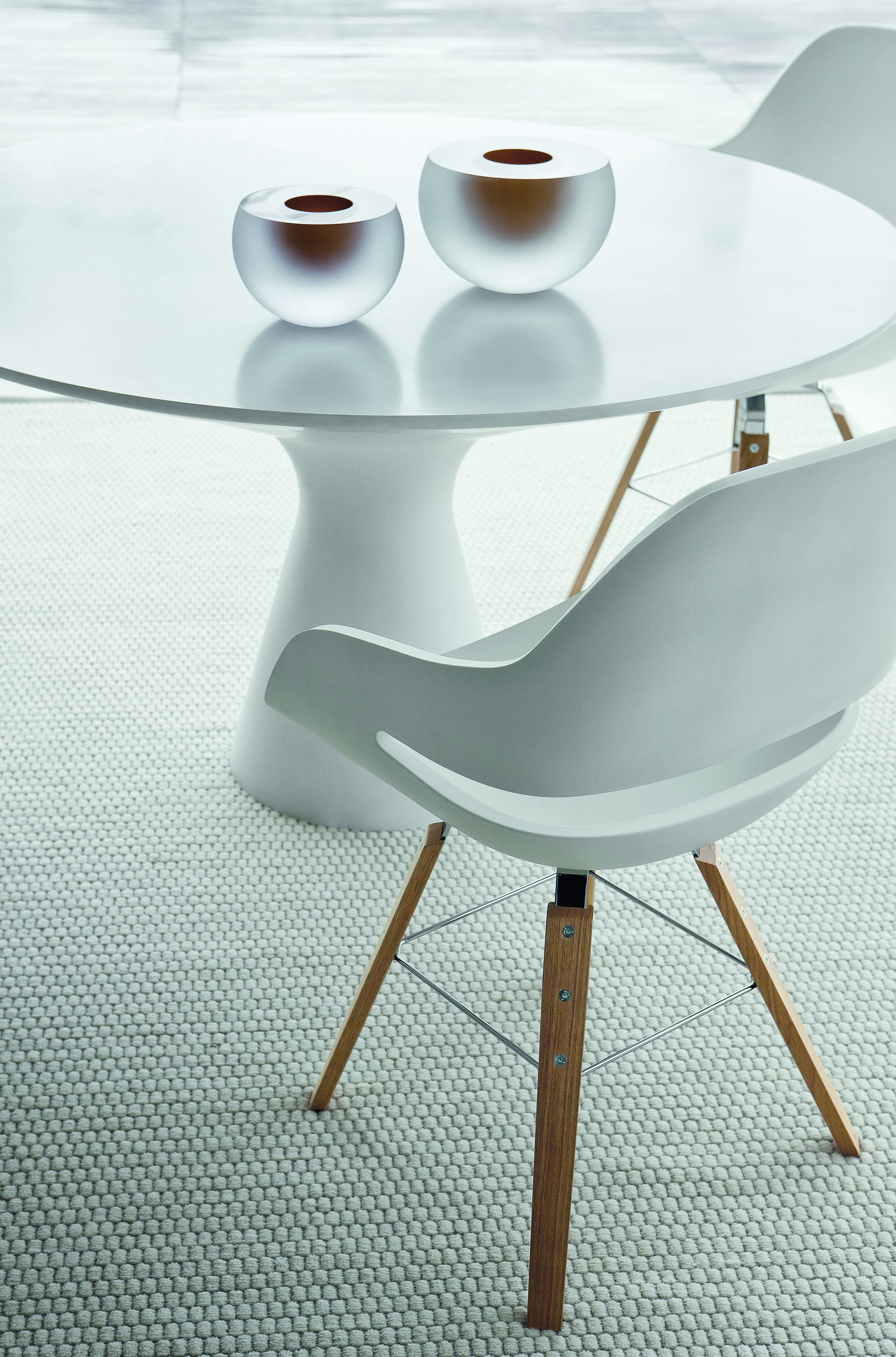 Обеденный стол Blanco 2577 с круглой столешницей. Есть два варианта исполнения модели: ножка и столешница изготовлены из композитного материала Cristalplant® в матовом белом цвете либо ножка выполнена из материала Cristalplant® в матовом белом цвете, а столешница из закаленного стекла толщиной 8 мм с окрашенной в белый цвет поверхностью. Детали по данному товару уточняйте у менеджеров или в PDF инструкции.