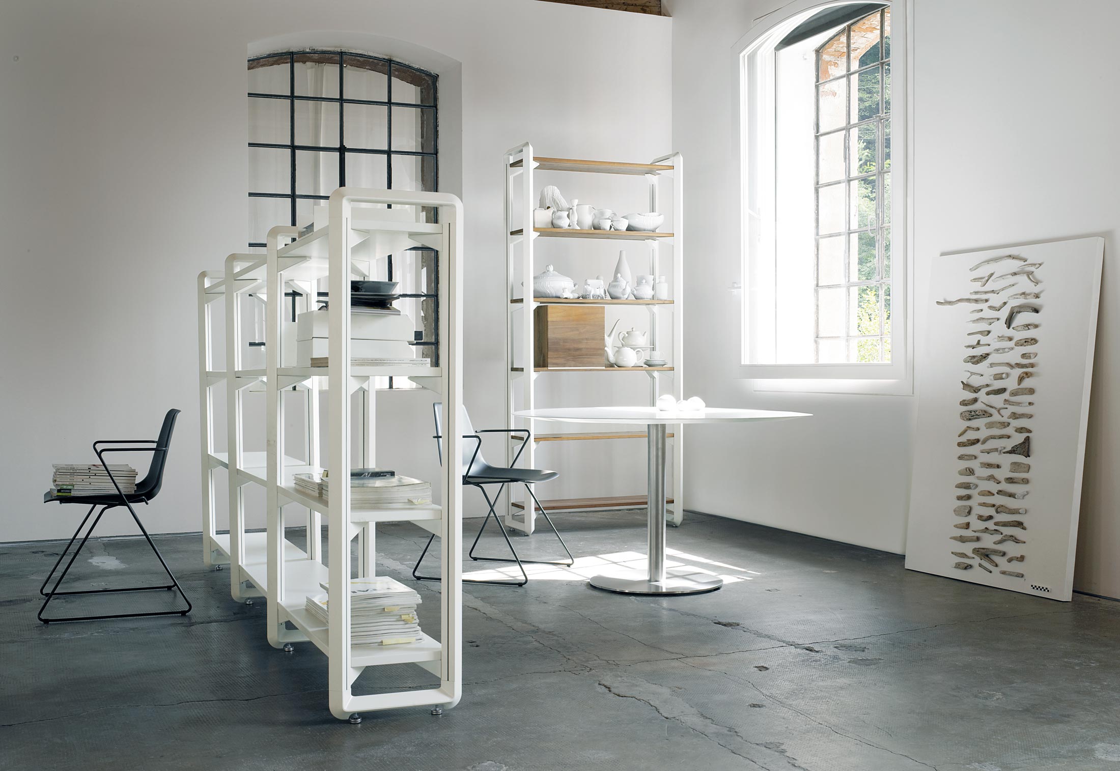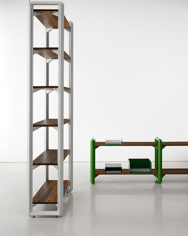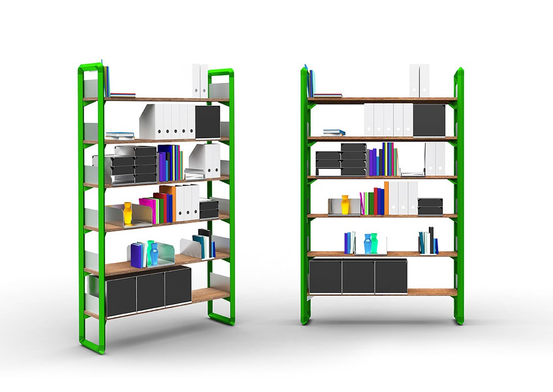 Каркас модульного стеллажа Bloom изготавливается из алюминия. Полки выполняются из натуральной древесины и покрываются лаком. Доступно несколько вариантов цвета стеллажа. Для создания собственной композиции вы можете использовать любой набор модулей из числа представленных фабрикой. Детали о данной модели уточняйте у менеджеров или в PDF инструкции.
