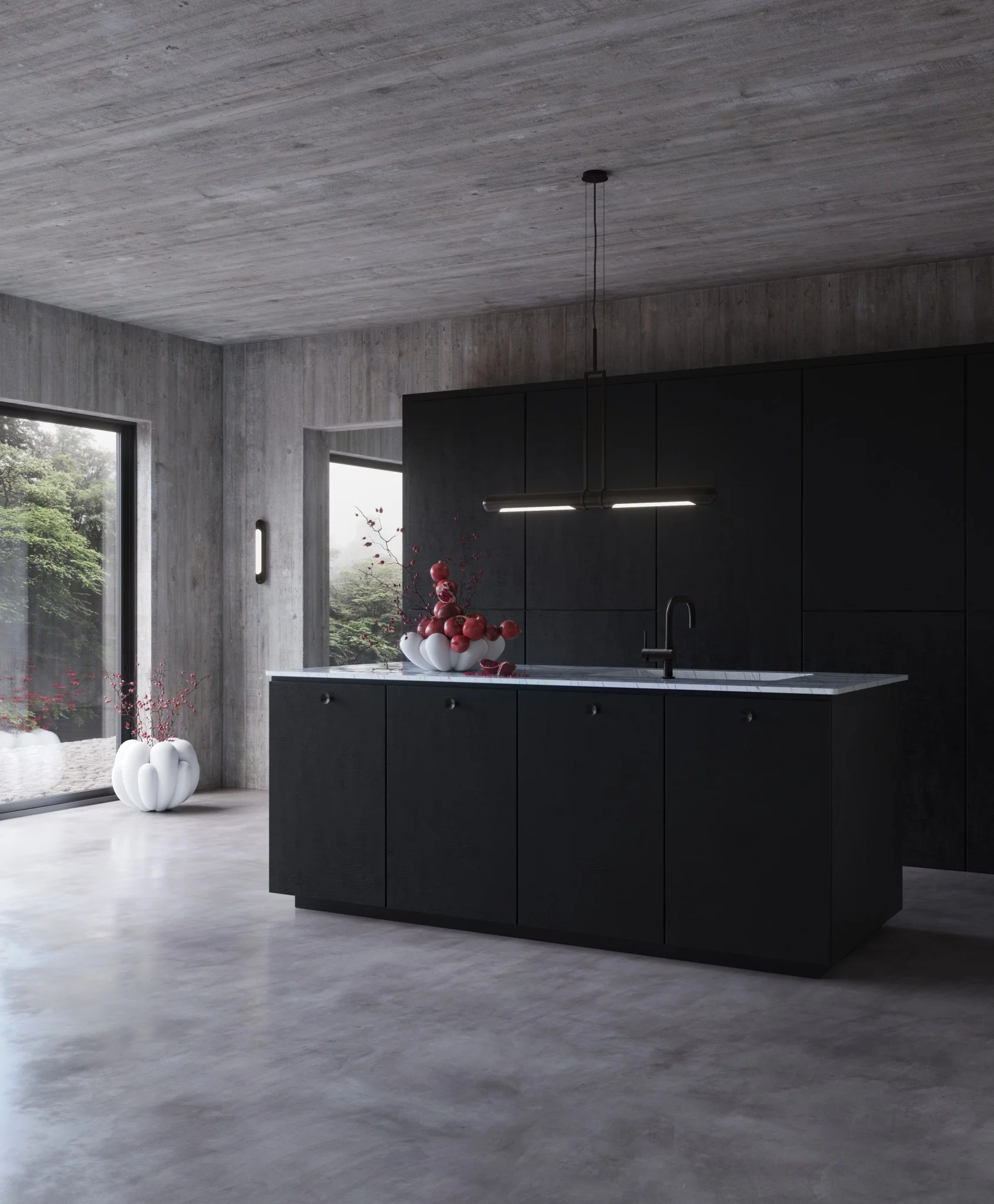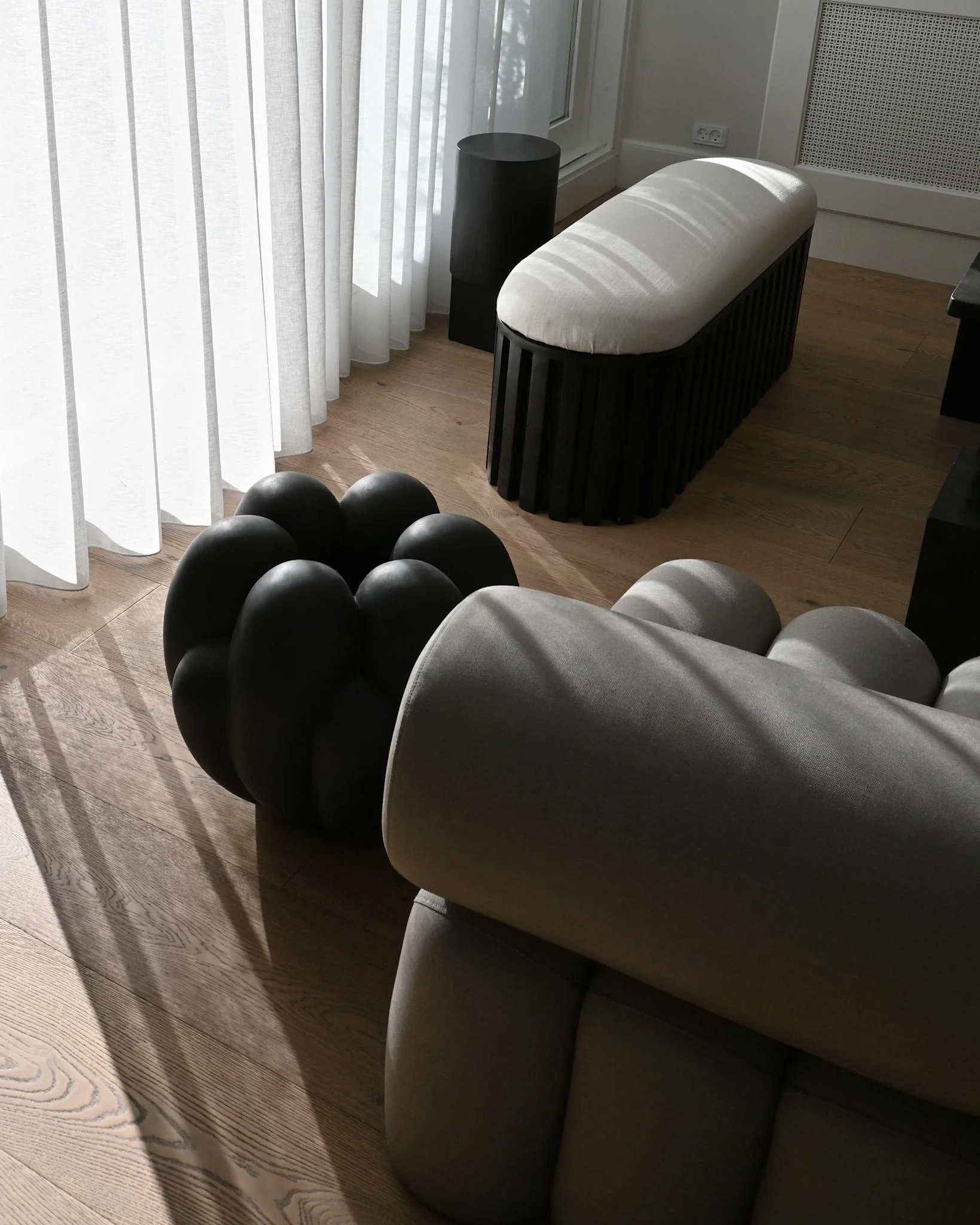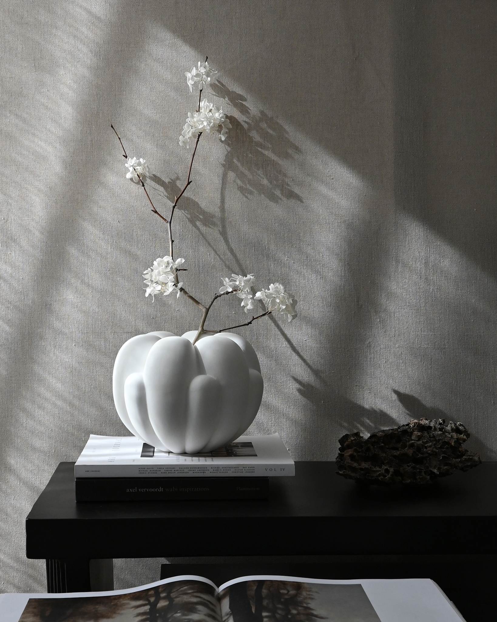 Вдохновением для создания серии Bloom послужил цветочный дизайн 70-х годов. Однако она выполнена в более грубом, минималистичном и чистом стиле. Плавные изгибы поверхности ваз контрастируют с чёткими, геометрическими формами. Это создаёт интересный визуальный эффект. Игра света и тени, проникающая в глубину керамики, добавляет вазам глубину и объём. Это делает их ещё более живыми и динамичными.
