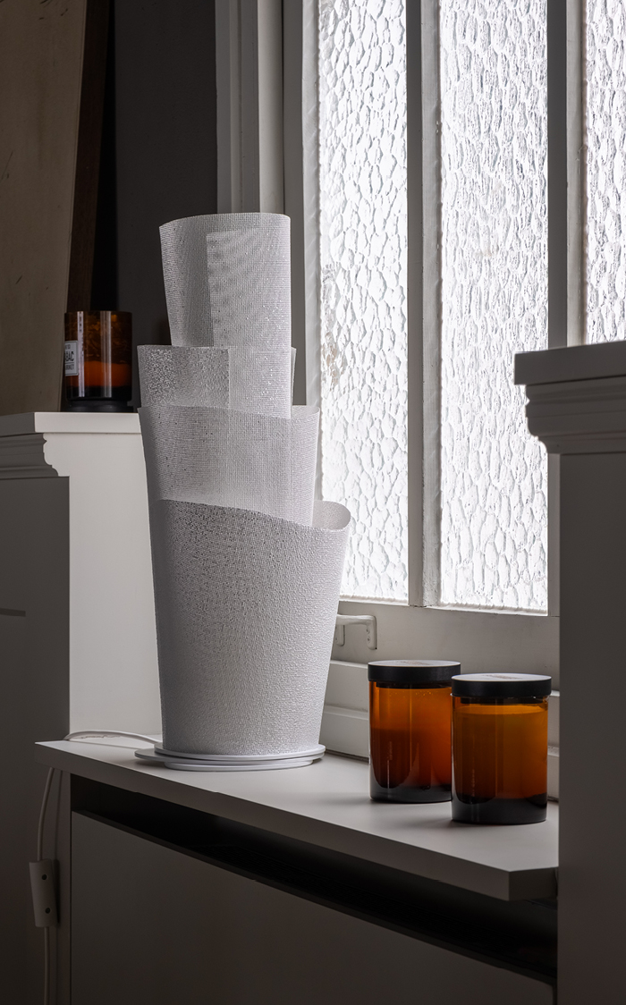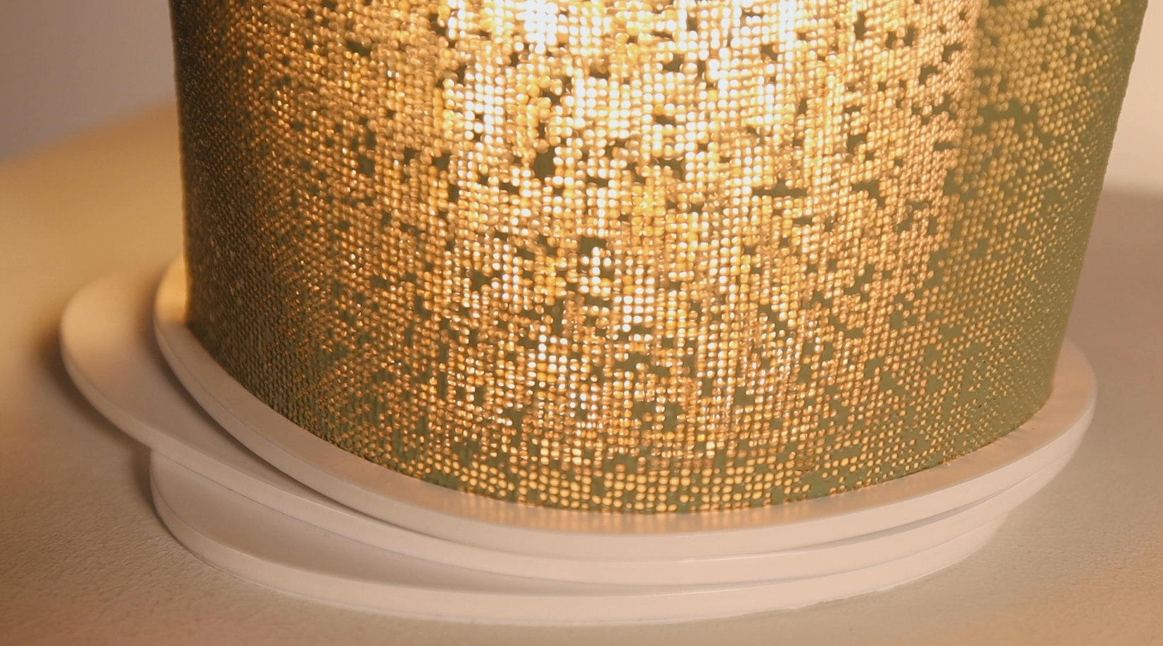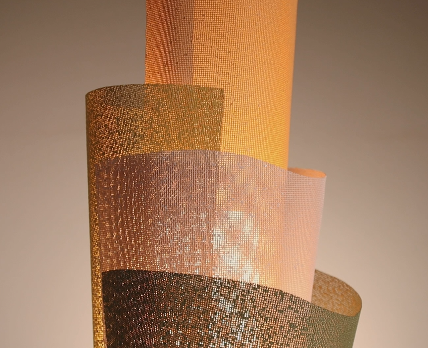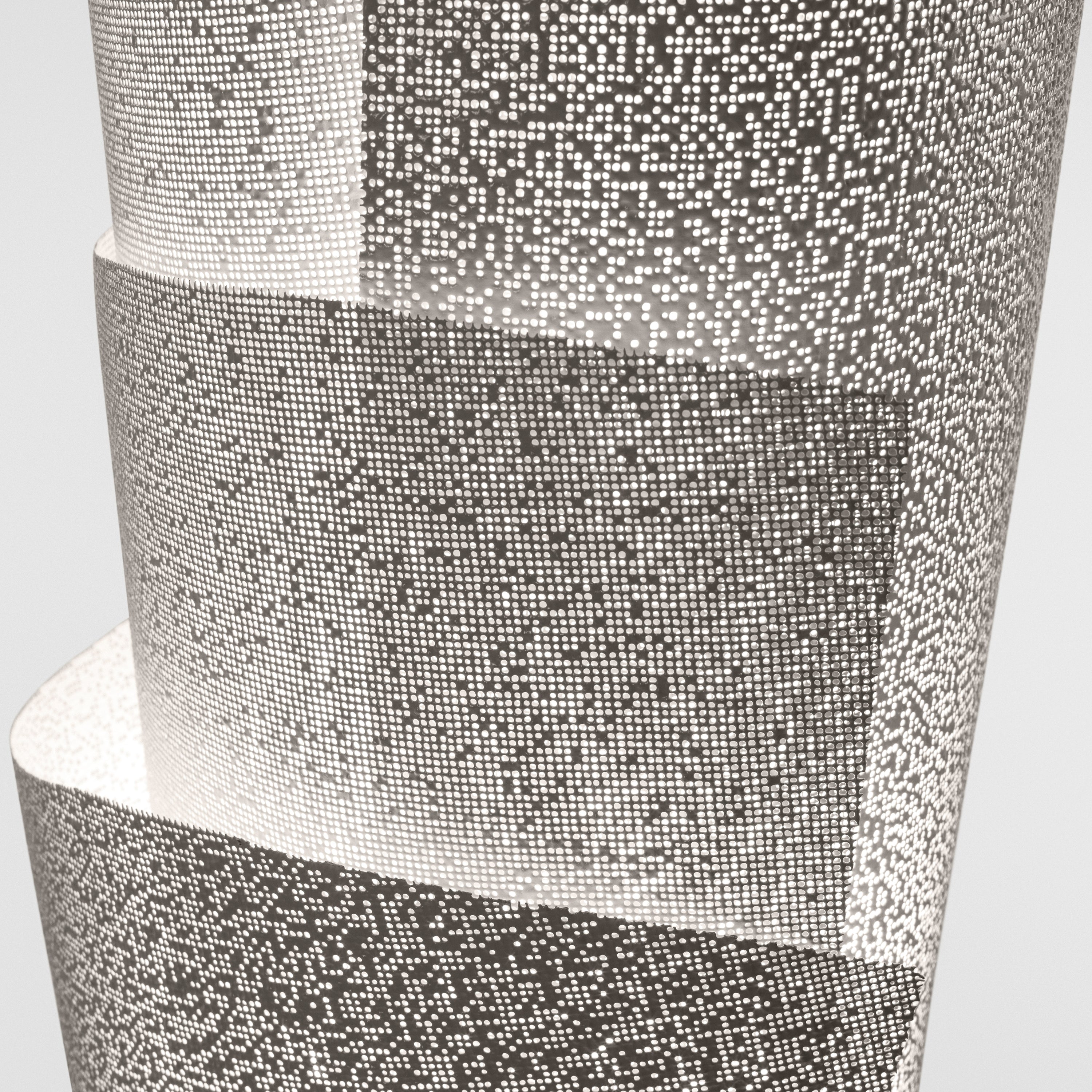 Особенность модели — в её изменчивости. Если смотреть на лампу с разных сторон, можно заметить, как играют очертания, переливаются цвета и перестраиваются узоры. Эффект достигается за счёт асимметричной конструкции из окрашенной нержавеющей стали: сетка придаёт изделию воздушность, но остаётся прочной и современной.
