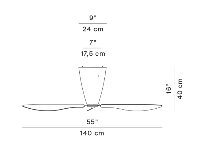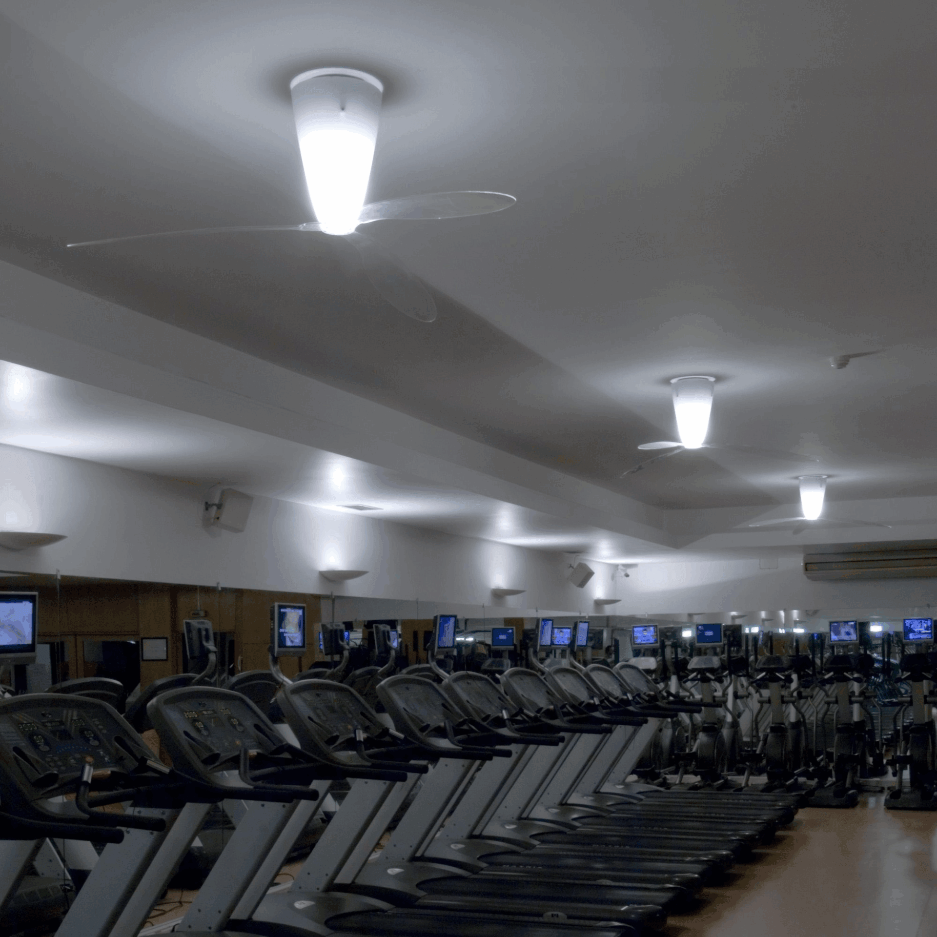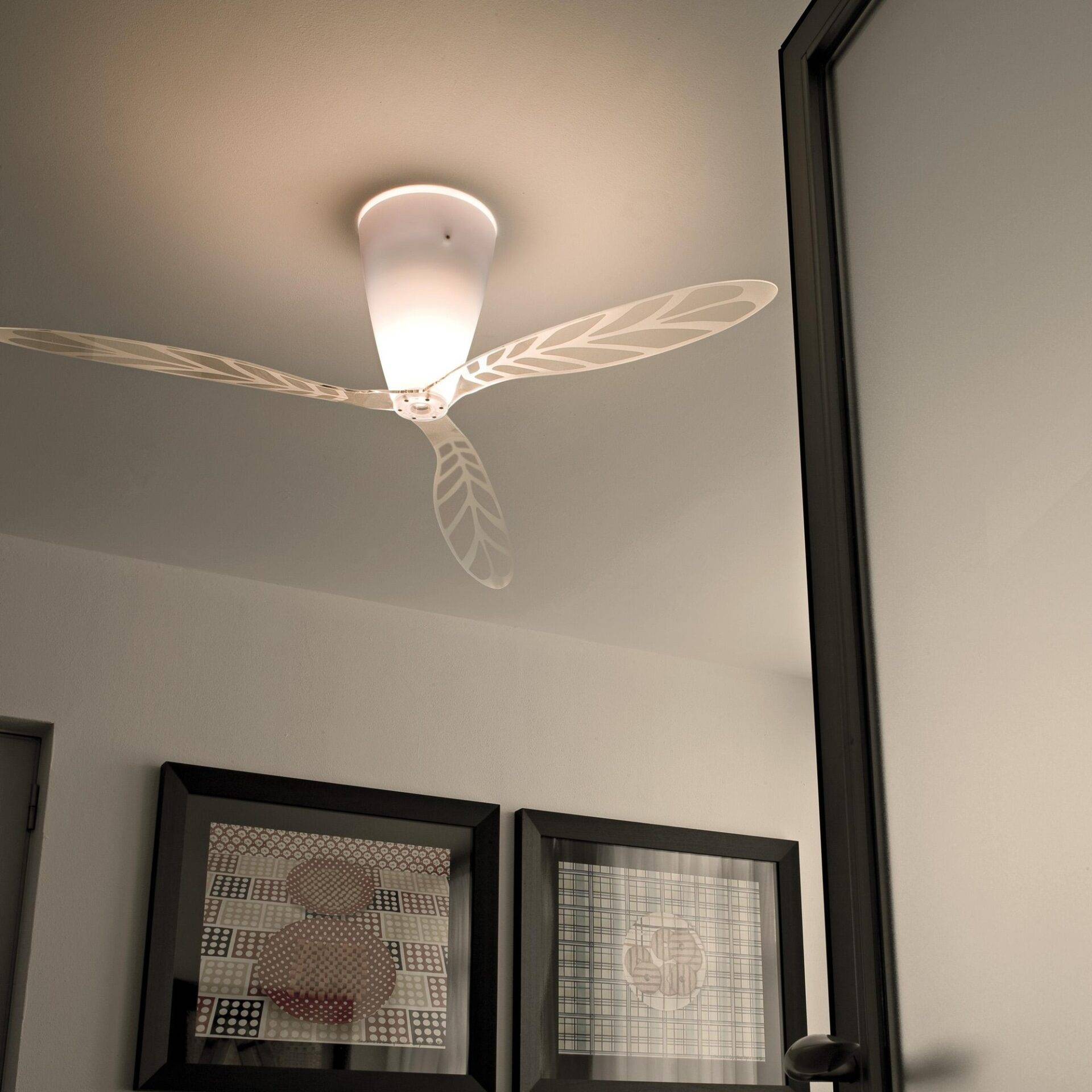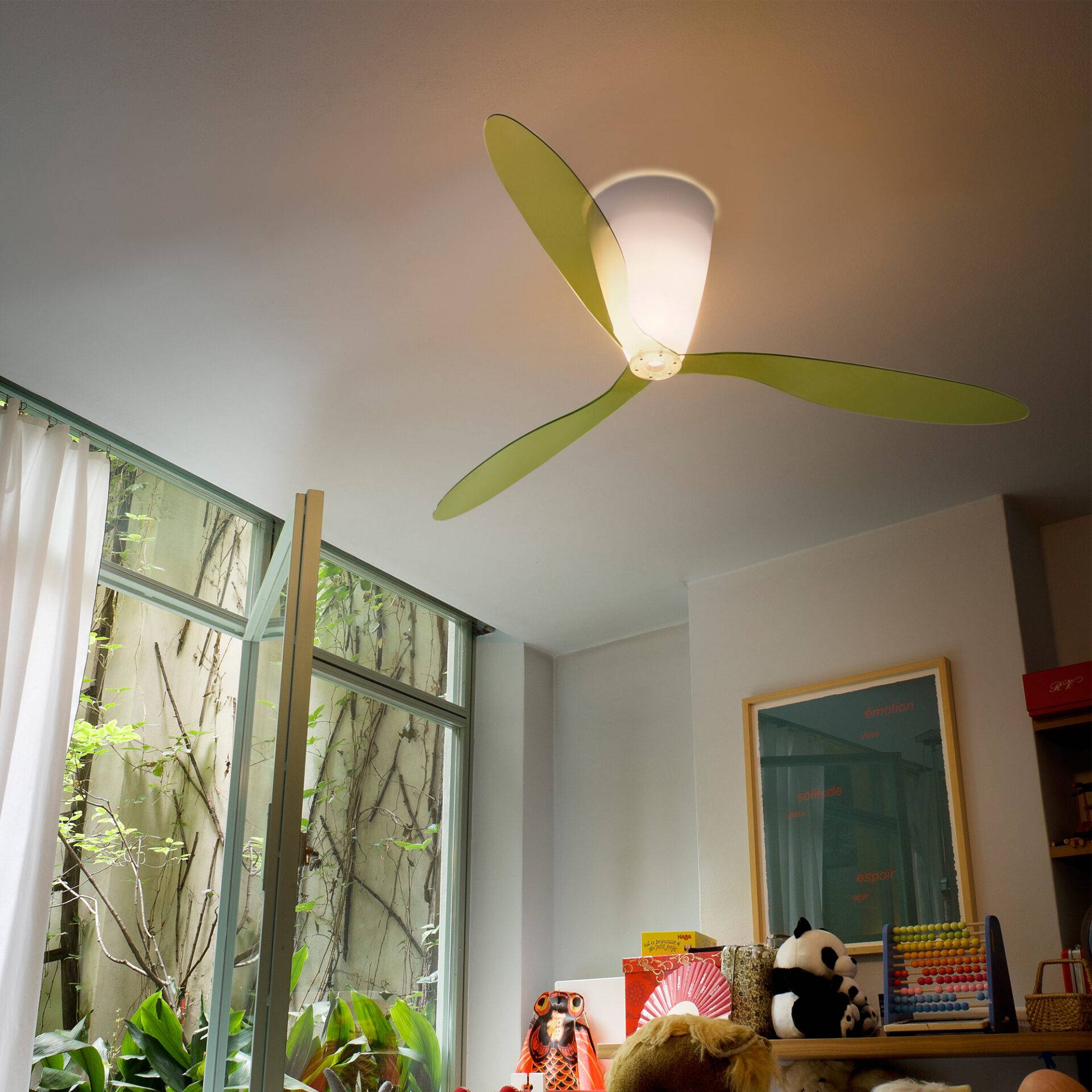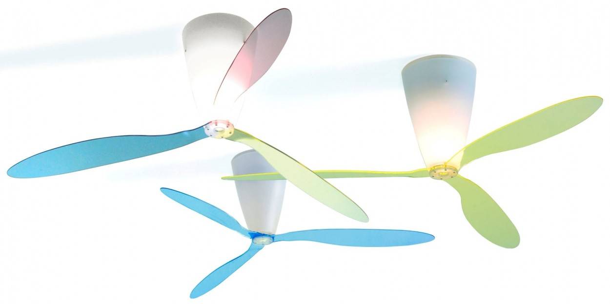 Светильник отличается инновационной конструкцией. Внутри устройства находятся цветные или прозрачные лопасти из метакрилата. Они вращаются с разной скоростью и обеспечивают циркуляцию воздуха. Лопасти разработаны так, чтобы не мешать распространению белого света. Это позволяет светильнику не только освещать помещение, но и эффективно вентилировать его.