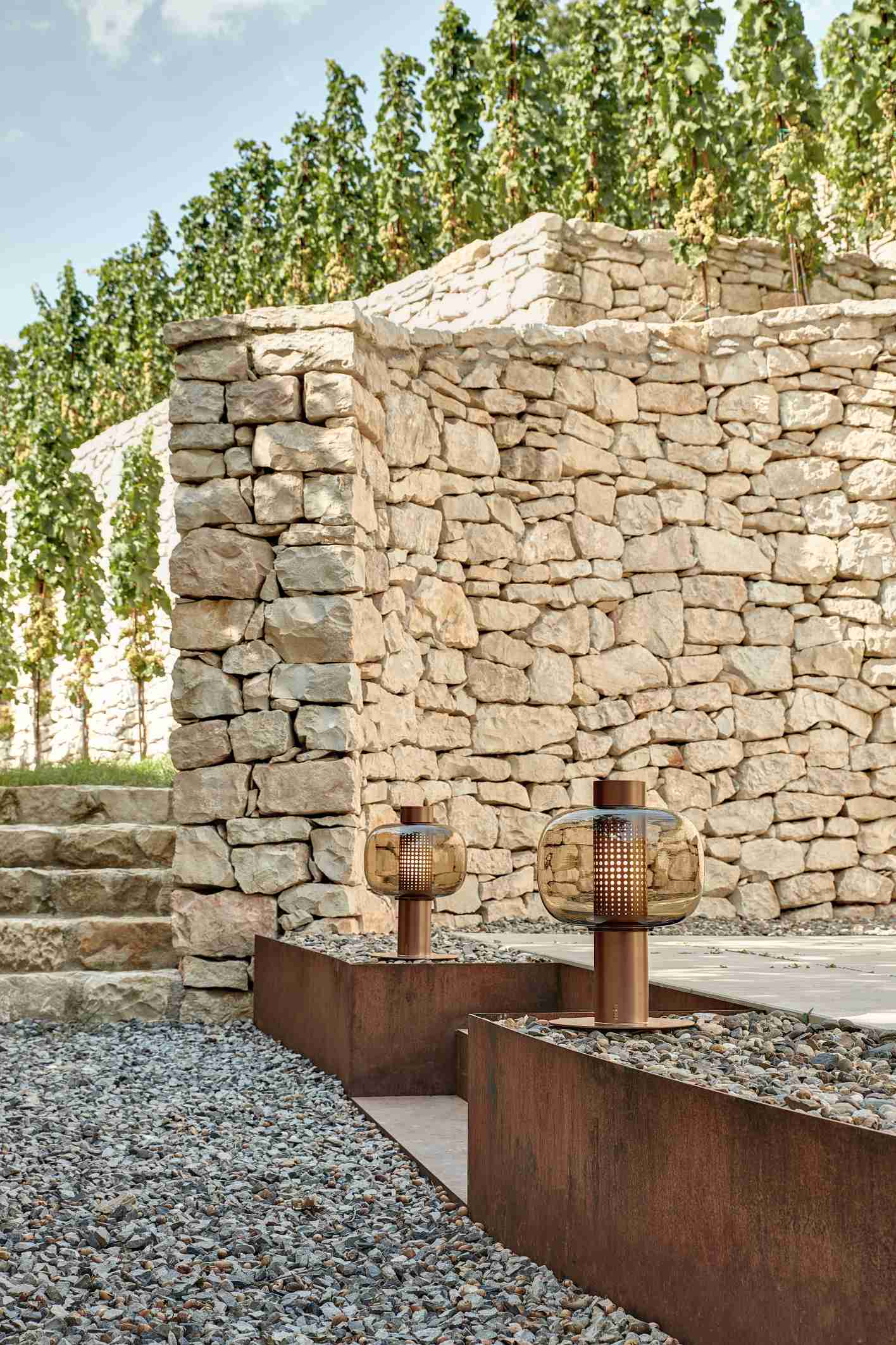 Для изготовления плафонов использовано стекло нескольких оттенков: дымчато-серое, дымчато-коричневое, опалиново-прозрачное, триплексный опал, оливково-зелёное. Это позволяет подобрать светильник, который гармонично впишется в любой ландшафт.