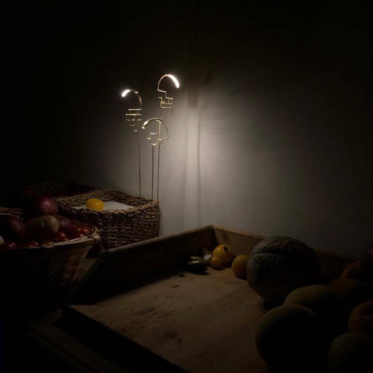 Его форма напоминает растение с тонкими стебельками, которые изящно тянутся вверх и переплетаются между собой, словно колоски. Такая конструкция придаёт светильнику уникальность и делает его настоящим арт-объектом, который может стать ярким элементом интерьера.
