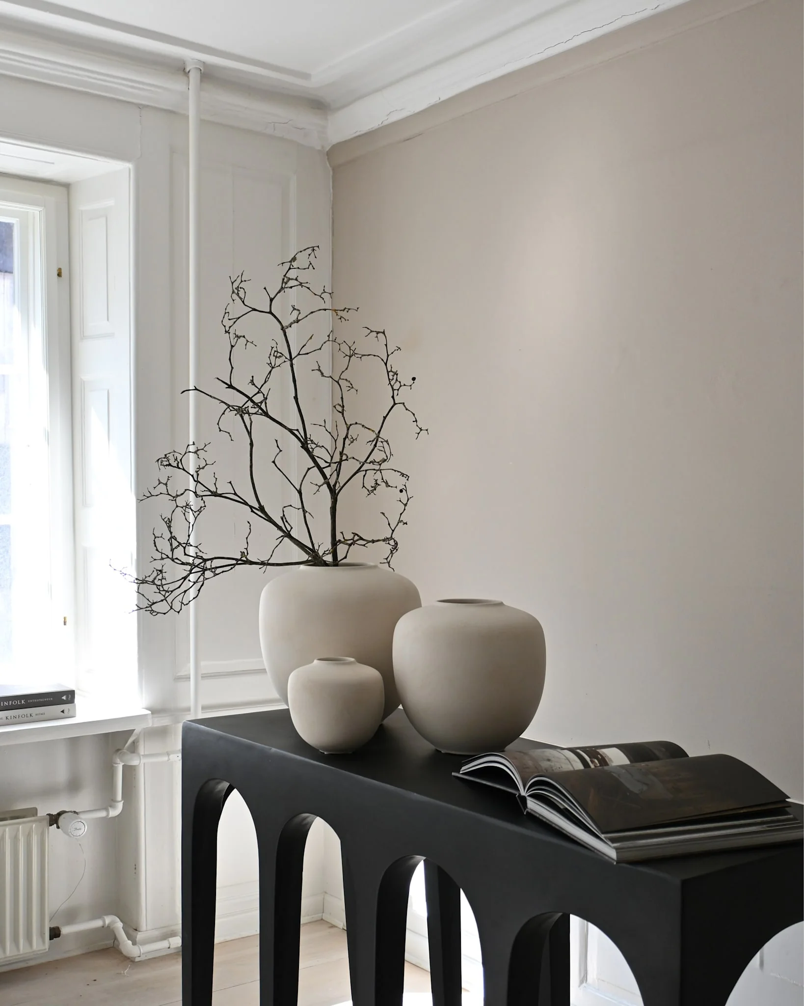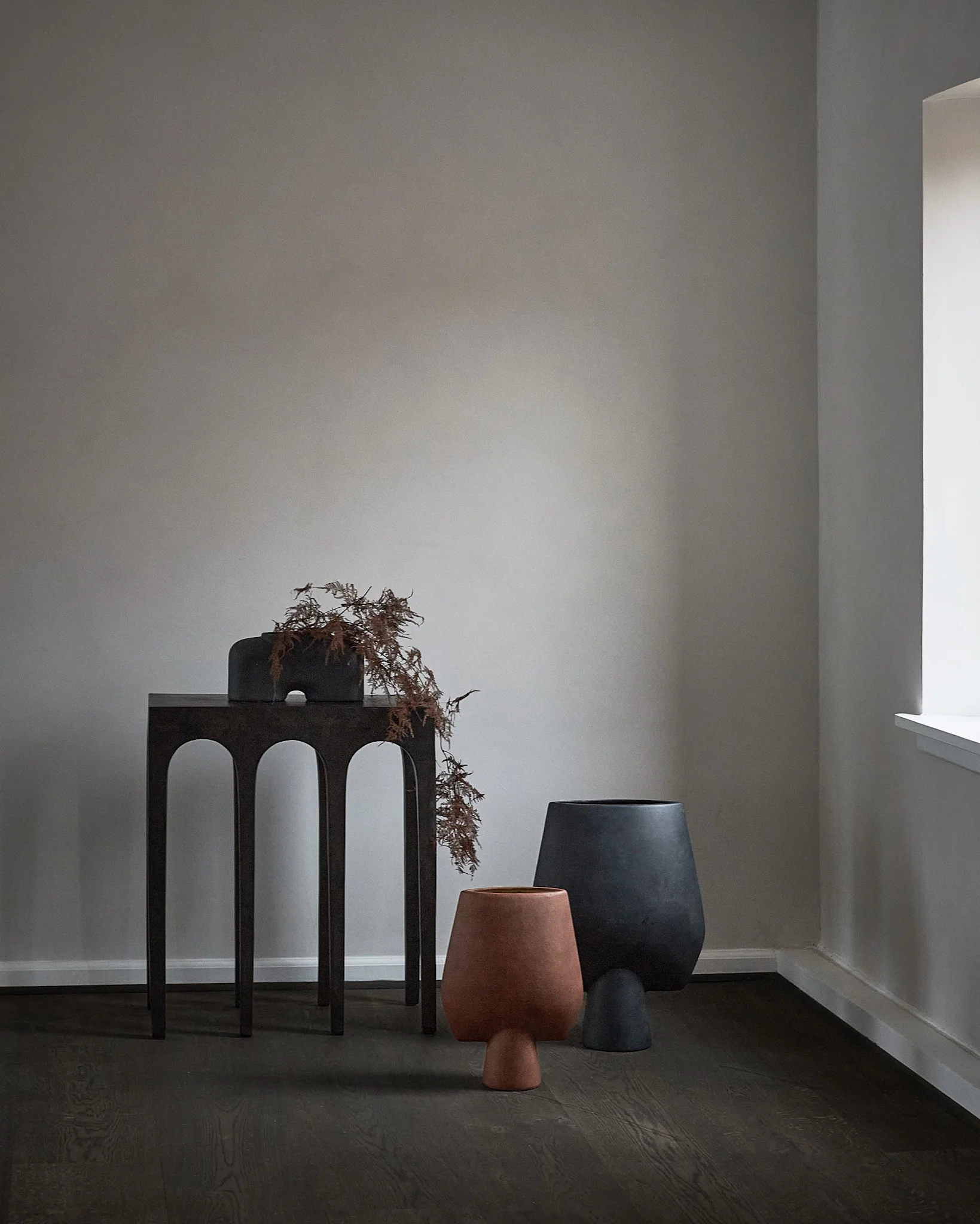 В серию входят консольные столики разных размеров и скамья. Такое решение позволяет создавать гармоничные композиции в интерьерах любого стиля. Bow Console — это результат творческого союза дизайнеров Кристиана Софуса Хансена и Томми Хильдаля. Они сумели объединить скульптурную выразительность с практичностью.