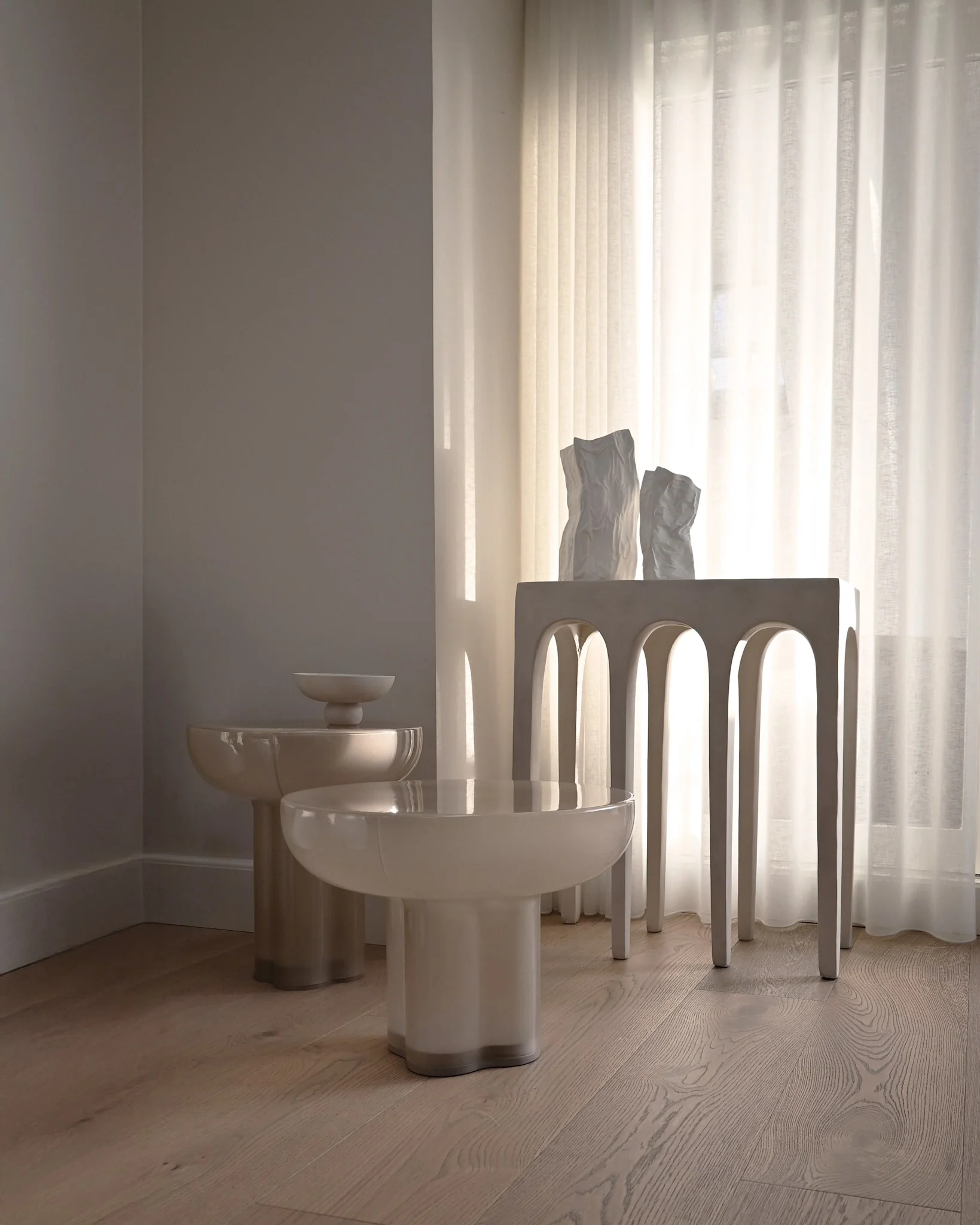 Bow Console — это коллекция, вдохновленная величием античной архитектуры. Её дизайн отсылает к монументальности древнеримских акведуков, где ритмичное чередование арок создает ощущение легкости. Силуэт изделий одновременно сдержан и выразителен. Удлиненные ножки придают им утонченную грацию, смягчая визуальную массивность конструкции.