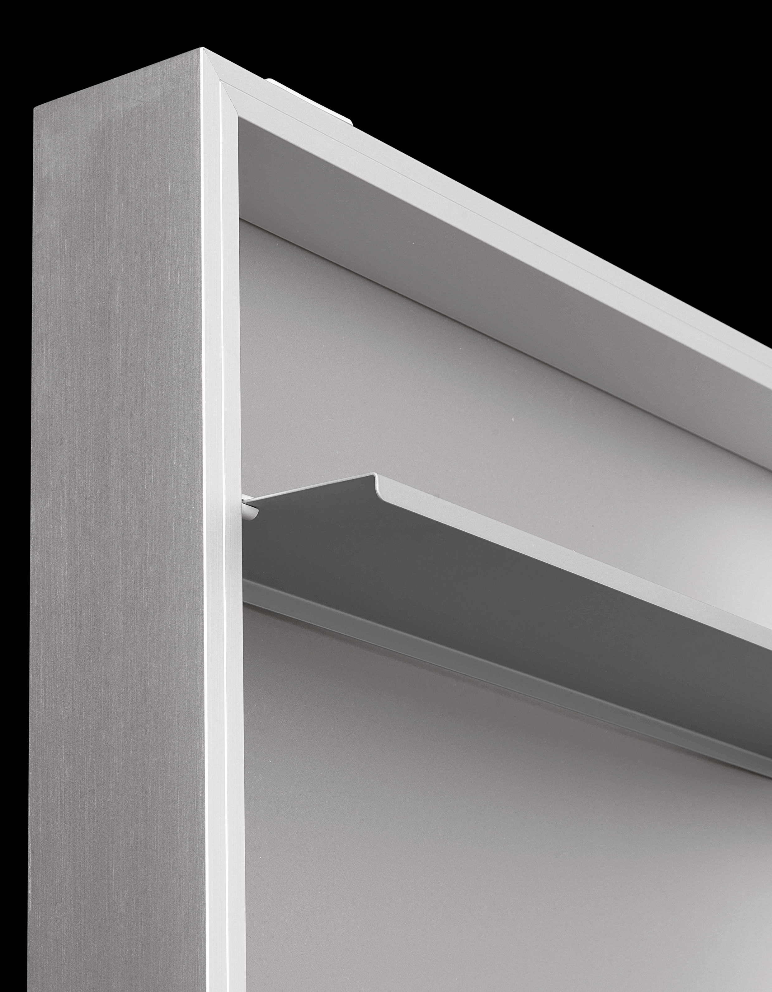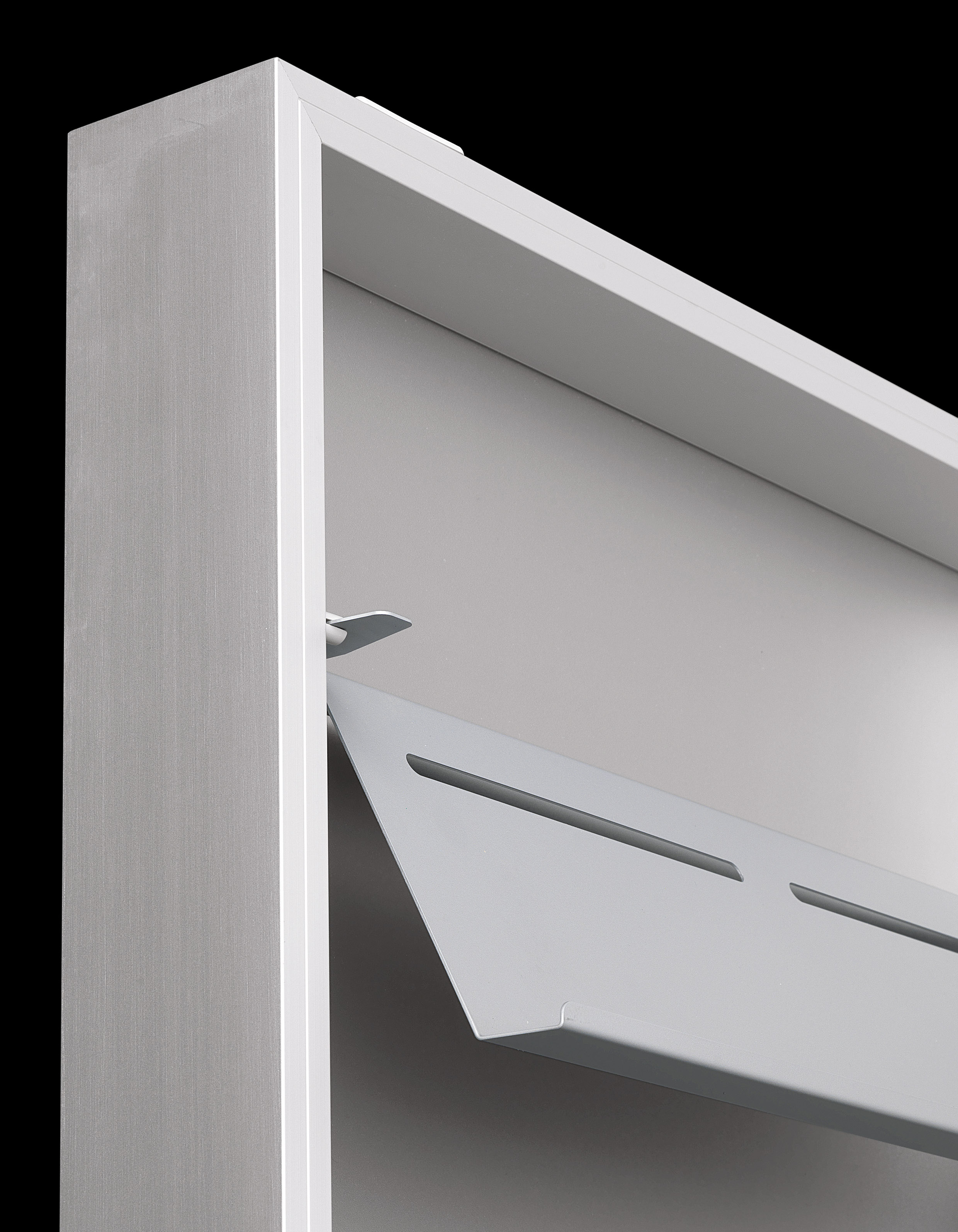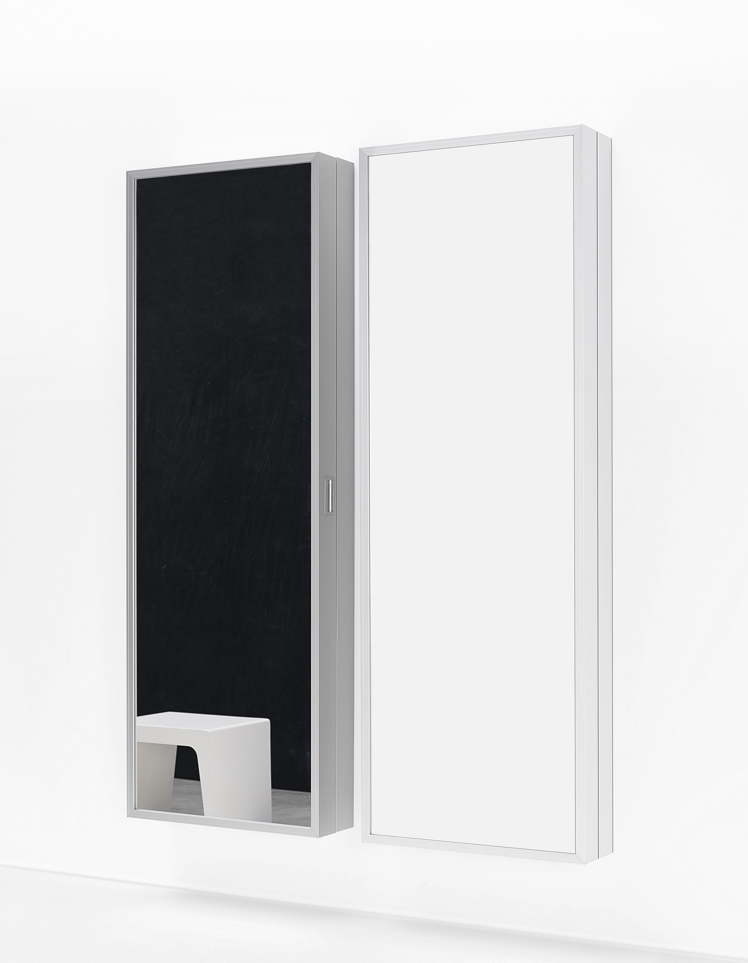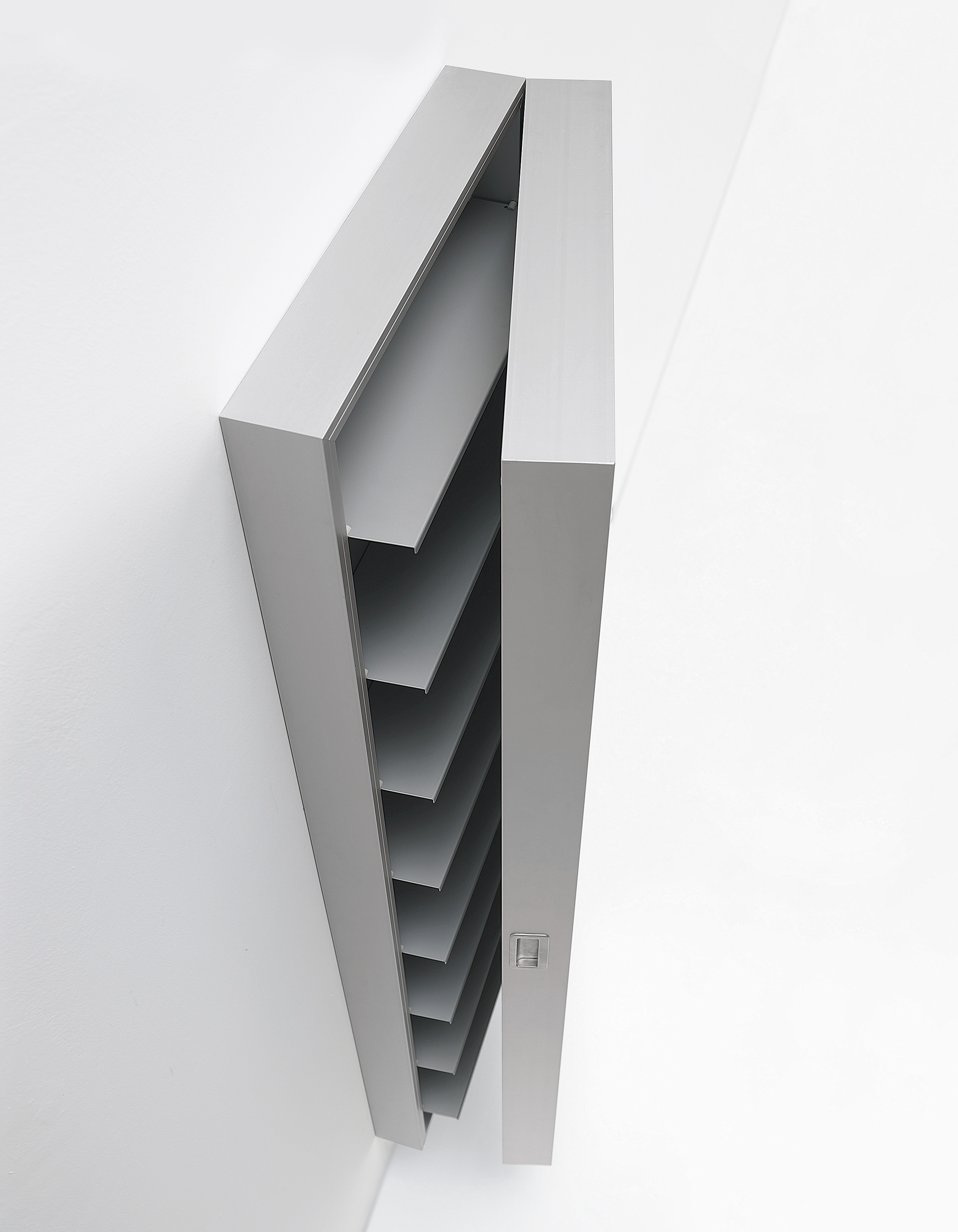 Box — это комбинация зеркала и шкафа для обуви. Подвесной шкаф Box изготавливается из алюминия: анодированного или покрытого лаком в белом цвете. Полки выполняются из металла и покрываются лаком. Подробнее о данной модели уточняйте у менеджеров или в PDF инструкции.