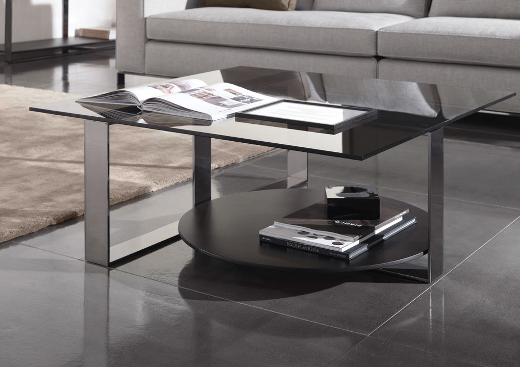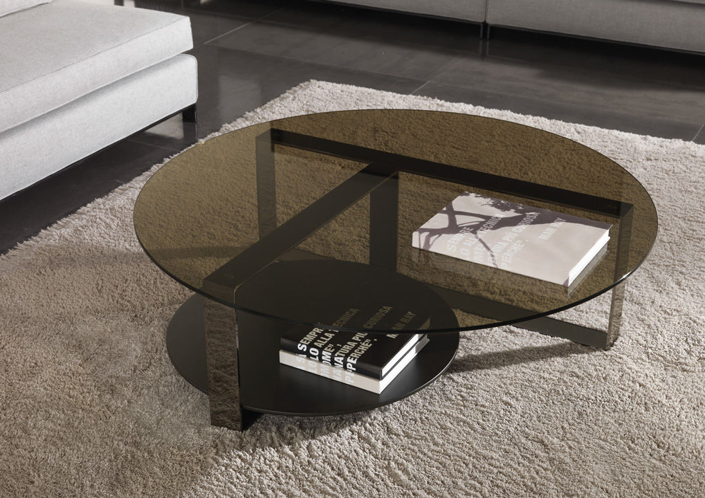 Основание столика Bresson изготовлено из металла, цвета черного никеля. Столешница может быть круглой или квадратной формы и выполняется из тонированного стекла. Столик Bresson имеет дополнительную круглую столешницу, которая находится внизу. Подробнее уточняйте у менеджеров или в PDF инструкции.