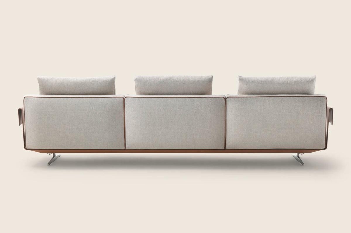 Основание дивана также выполнено из элегантного металла, покрытого кожей. Ножки из литого под давлением алюминия придают дивану строгий и современный вид. Варианты изысканной отделки ножек позволяют разнообразить общий стиль дивана и адаптировать его под различные интерьерные решения.