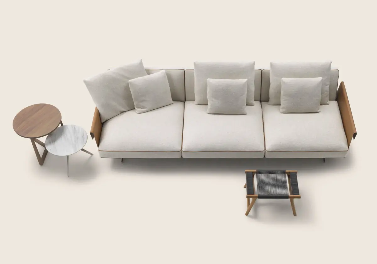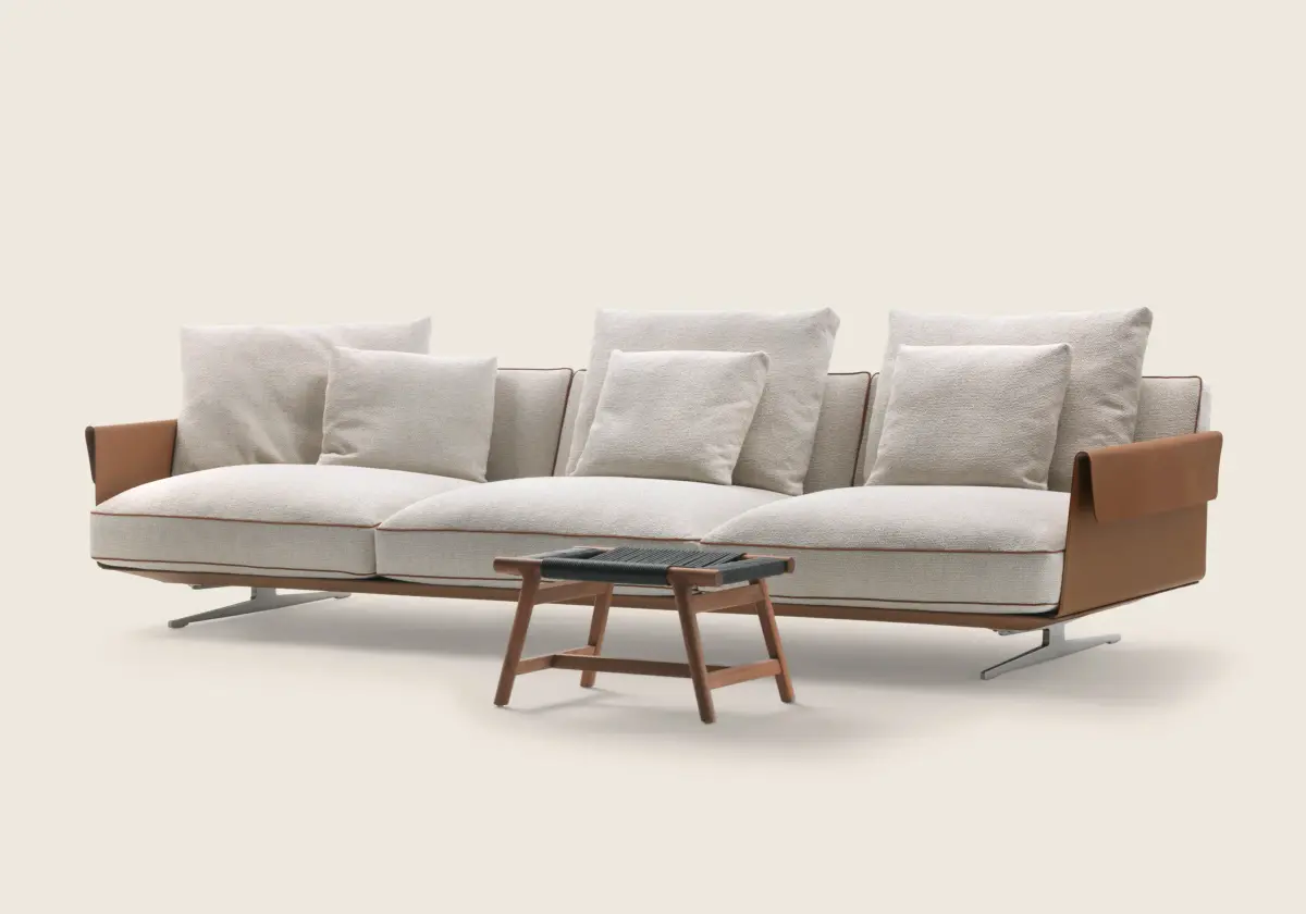 Диван Bretton отличается универсальностью. Он позволяет создавать многочисленные комбинации кожаного каркаса с мягкими частями, которые могут быть обиты как тканью, так и кожей. Это делает диван идеальным выбором для различных стилей интерьера и личных предпочтений.