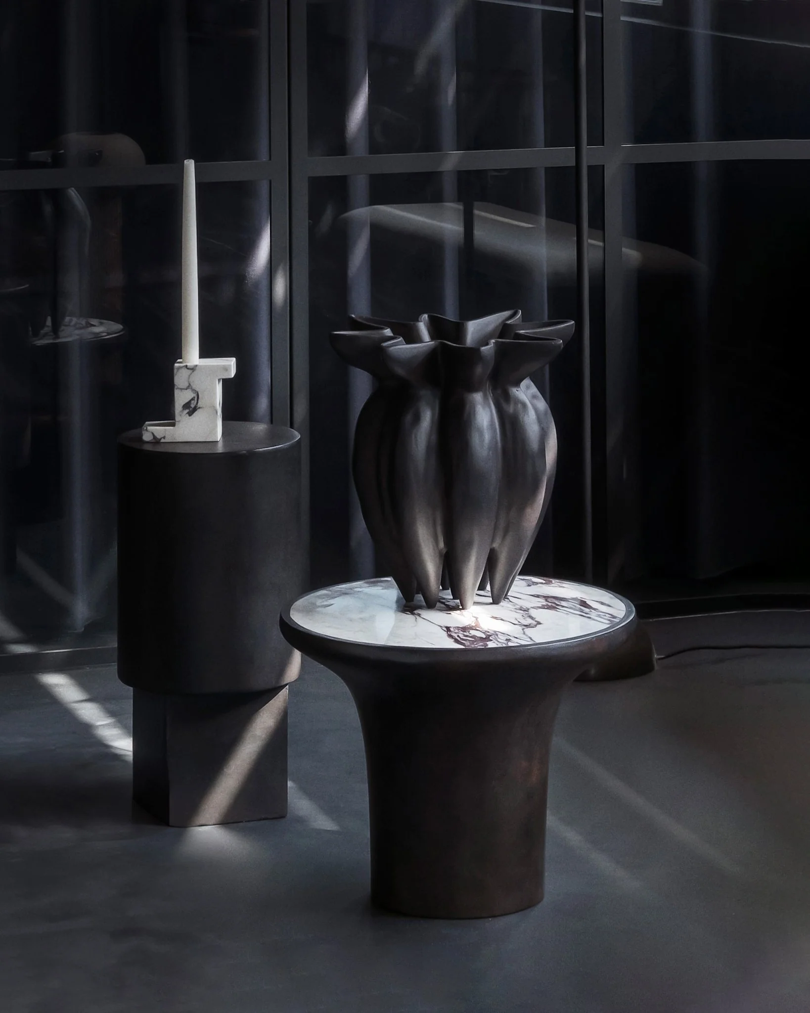 Каждый экземпляр уникален — природный рисунок камня делает подсвечник не просто функциональным предметом. Он становится миниатюрным произведением искусства. Доступный в двух гармонирующих размерах, он может быть частью скульптурной композиции. Эта композиция напоминает фрагмент древней стены. Или же подсвечник может быть самостоятельным акцентом в интерьере. Он добавляет пространству тактильную глубину и архитектурную выразительность.