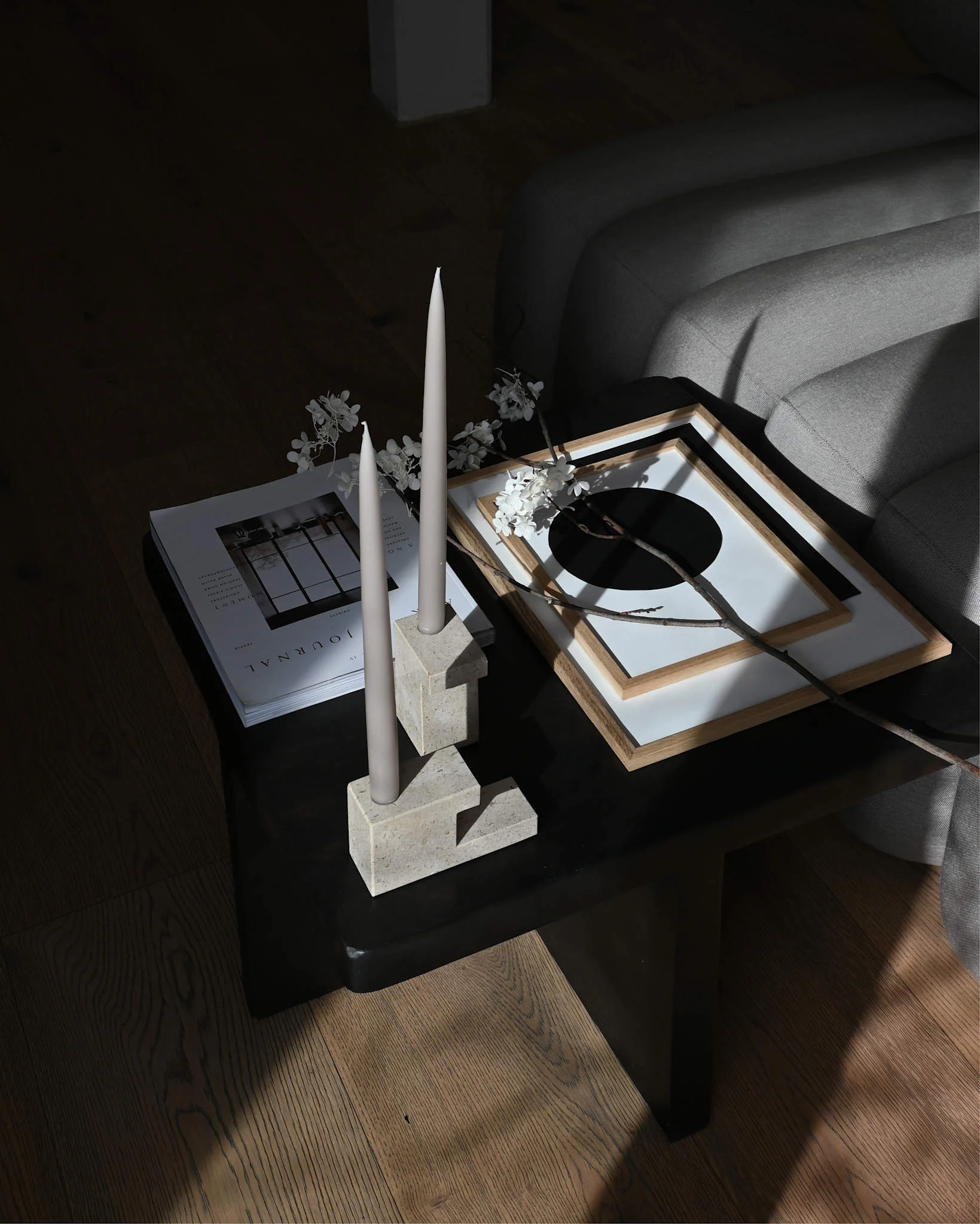 Гладкая полированная поверхность отражает мерцание свечи. Наполняя пространство тёплым, живым светом. А лаконичная геометрия формы отсылает к современным и классическим архитектурным мотивам.