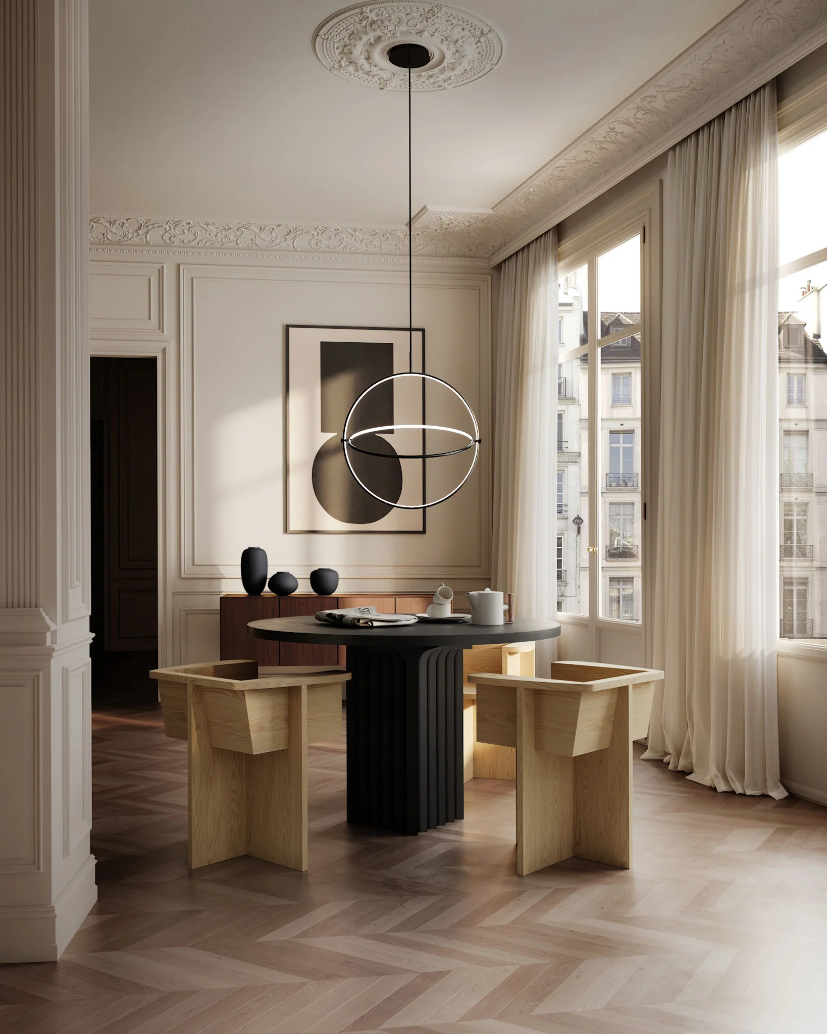 Коллекция Brutus сочетает чёткие, геометрические линии и мягкие, плавные изгибы спинки и подлокотников. Эти скульптурные элементы создают ощущение динамики и лёгкости, обеспечивая максимальный комфорт. Спинка и подлокотники поддерживают правильную осанку и снижают нагрузку на позвоночник, превращая каждый приём пищи в особенное событие.
