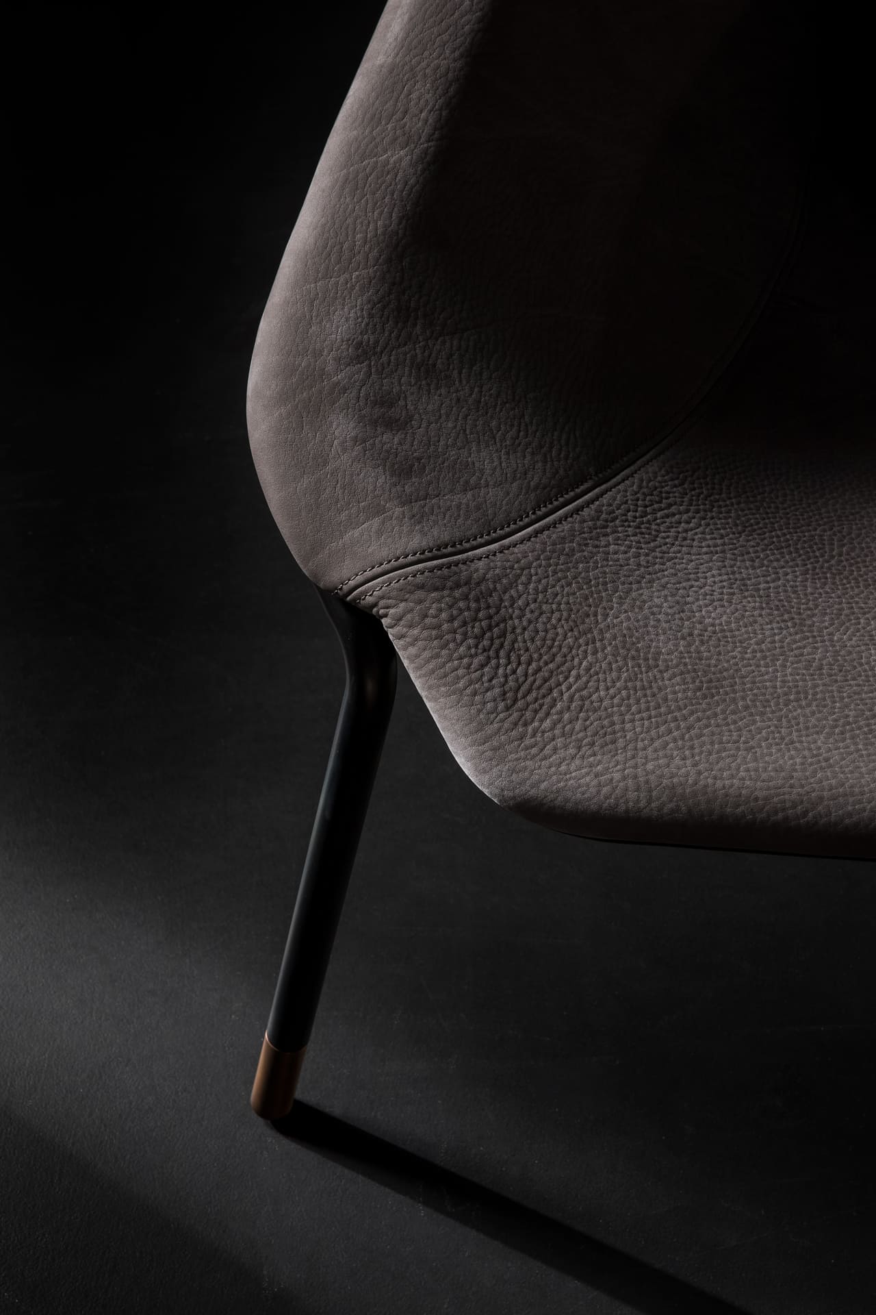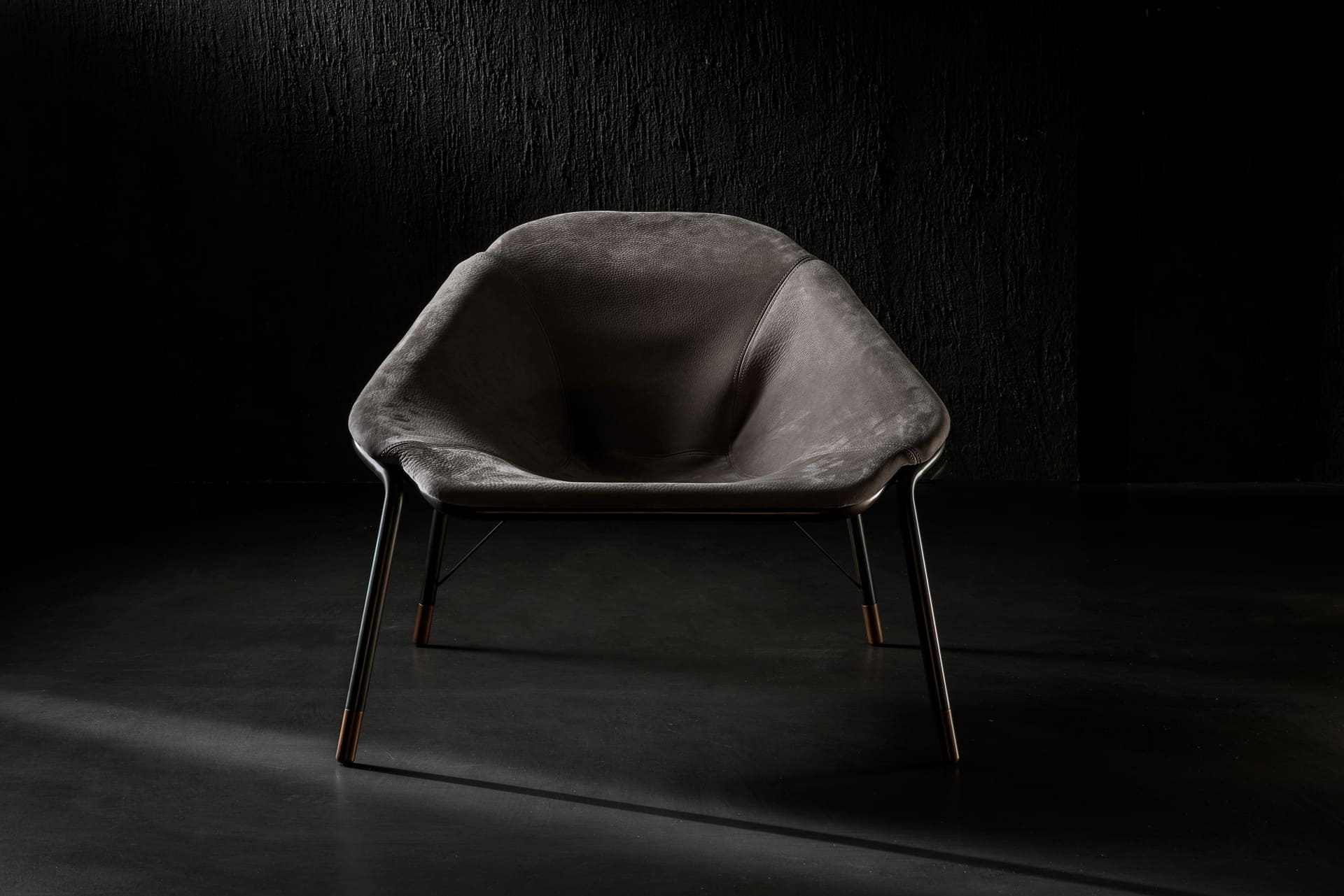 Сиденье кресла, просторное и удобное, словно обнимает, предлагая комфорт и уют. Оно покоится на тонких полированных железных ножках, которые, несмотря на свою кажущуюся хрупкость, создают ощущение надёжности и стабильности. Этот контраст между массивностью и лёгкостью придаёт креслу Bug особую изысканность, подчёркивая его элегантность. Латунные опоры добавляют изделию нотку роскоши и утончённости, становясь неотъемлемой частью его дизайна.