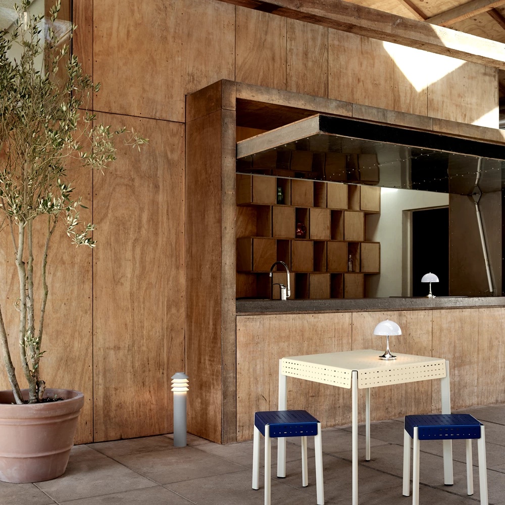 Светильник выполнен из прочного литого алюминия, который устойчив к коррозии и со временем не подвержен патинированию, что обеспечивает долговечность и сохранение внешнего вида даже при длительной эксплуатации в открытых условиях. Покрытие доступно в трех вариантах — в цвете кёртен (corten), алюминиевом и белом цвете. Это позволяет гармонично вписать светильник в различные архитектурные и ландшафтные решения. Предлагается в двух высотах для гибкого монтажа — от входных зон до клумб и террас.