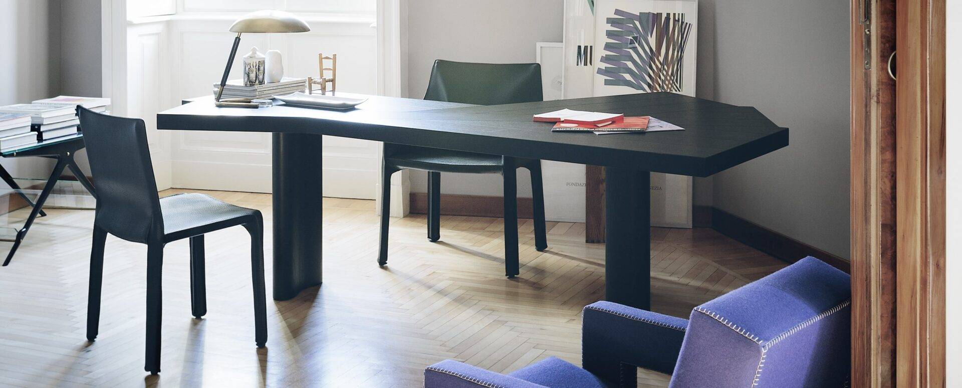 Стул Cab был разработан архитектором Марио Беллини (Mario Bellini). Каркас модели выполнен из эмалированной стали. Сиденье покрыто полиуретановой пеной. Кожаная обивка со строчкой натягивается на каркас и прикрепляется к раме стула с помощью четырех застежек-молний. Стул может быть обит обычной или седельной кожей трех оттенков в различных цветах. В коллекцию Cab входит несколько видов стульев и диванов, а также кресло и кровать. Более подробную информацию и возможные расцветки можно уточнить у менеджера.