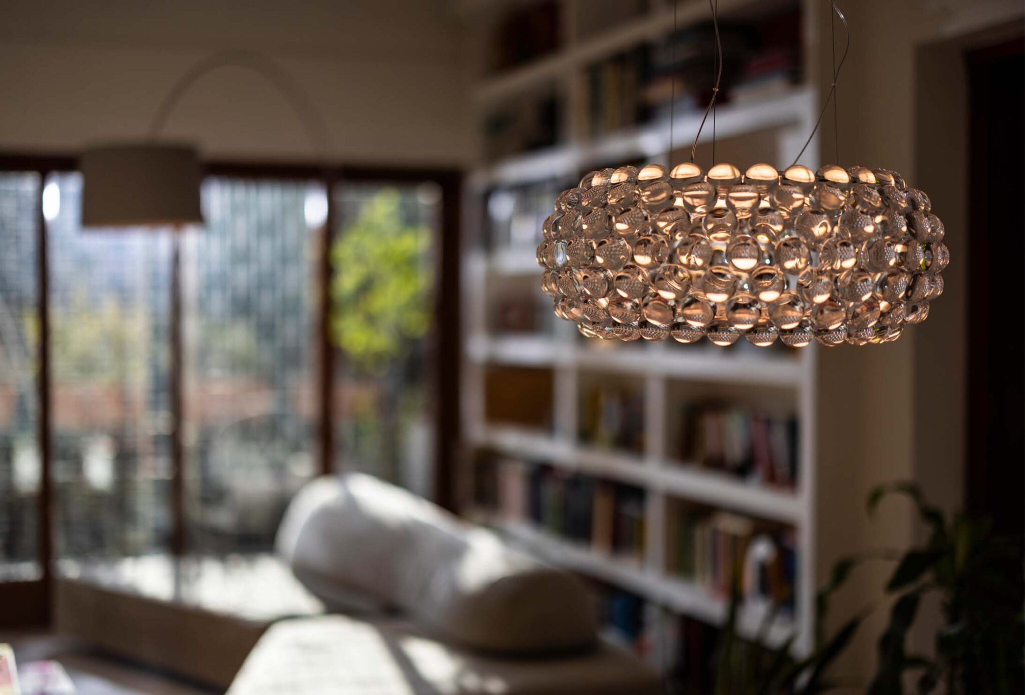 Caboche — это усовершенствованная версия оригинальной модели, которая представляет собой каскад сияющих сфер, напоминающих жемчужное ожерелье или браслет. Светильник создает уникальный, многогранный световой эффект: свет, исходящий от центрального источника, преломляется и отражается через множество прозрачных полимерных сфер, освещая пространство вокруг мерцающим и теплым сиянием. Он идеально подходит для просторных гостиных, столовых над большим столом, холлов или вестибюлей с высокими потолками, где его сияние может проявиться в полной мере.