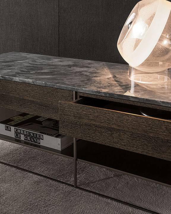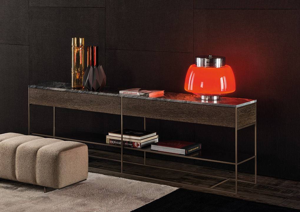 Основание стола Calder Bronze изготавливается из прочного металла и покрывается лаком бронзового цвета. Столешница выполняется из дерева и отделывается шпоном или покрывается лаком в различных цветах. Также для изготовления столешницы может использоваться мрамор. В верхней части столика-консоли располагаются два удобных выдвижных ящика. Подробнее уточняйте у менеджеров или в PDF инструкции.