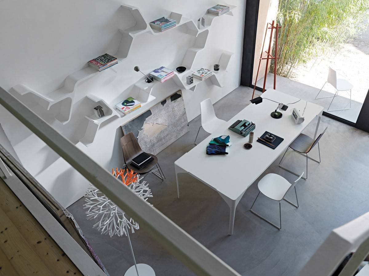 Система столов Canard характеризуется оригинальными ножками из изогнутого металлического листа, которые охватывают углы столешницы из армированного МДФ, обеспечивая структурное единство современного дизайна. Ножки стола могут быть черного или белого цвета, столешница - орех или цвет на выбор покупателя.nДоступно несколько размеров и вариантов отделки стола Canard. Для уточнения свяжитесь с нашими менеджерами.