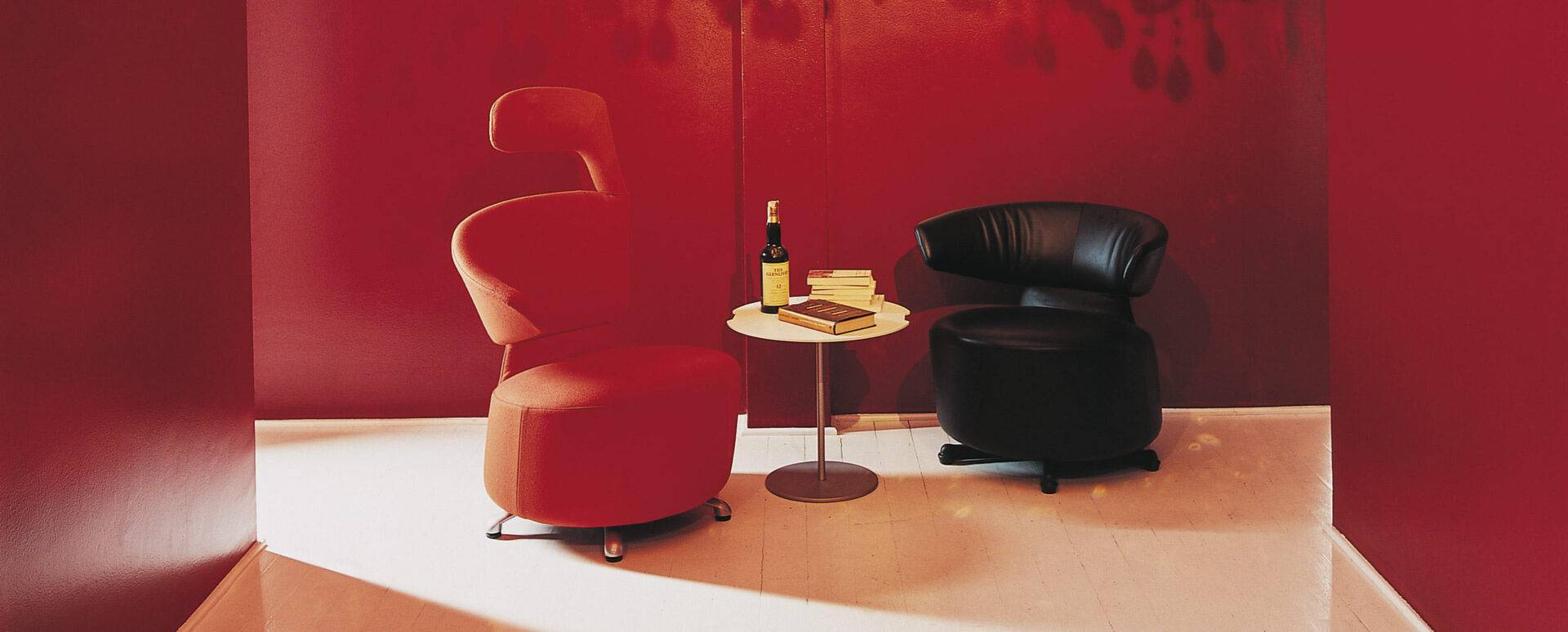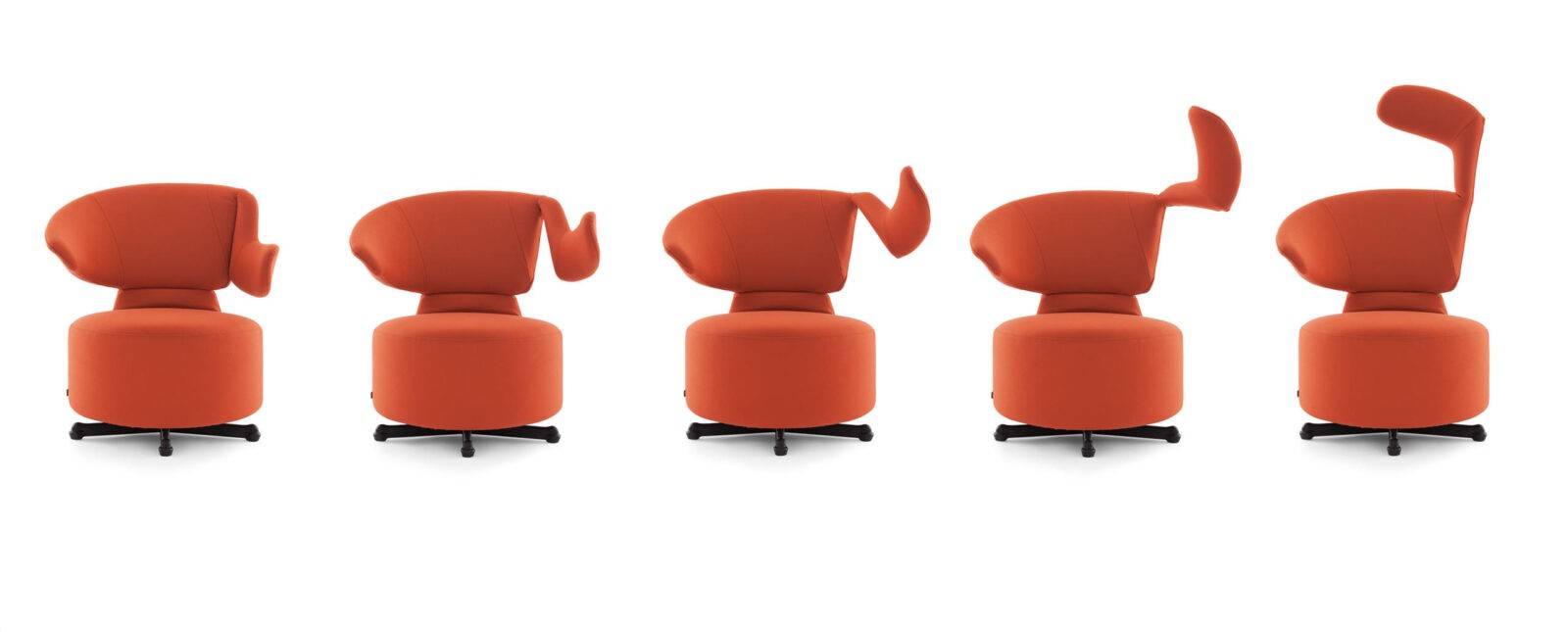 Футуристичная коллекция кресел К06 со спинкой с простыми или меняющими положение подлокотниками, либо вовсе без них. Подлокотник, способный принимать различные формы, может также использоваться в качестве эргономичного подголовника. Кресла состоят из стального основания, набиты мягким пенополиуретаном. Съемная обивка из ткани или натуральной кожи.