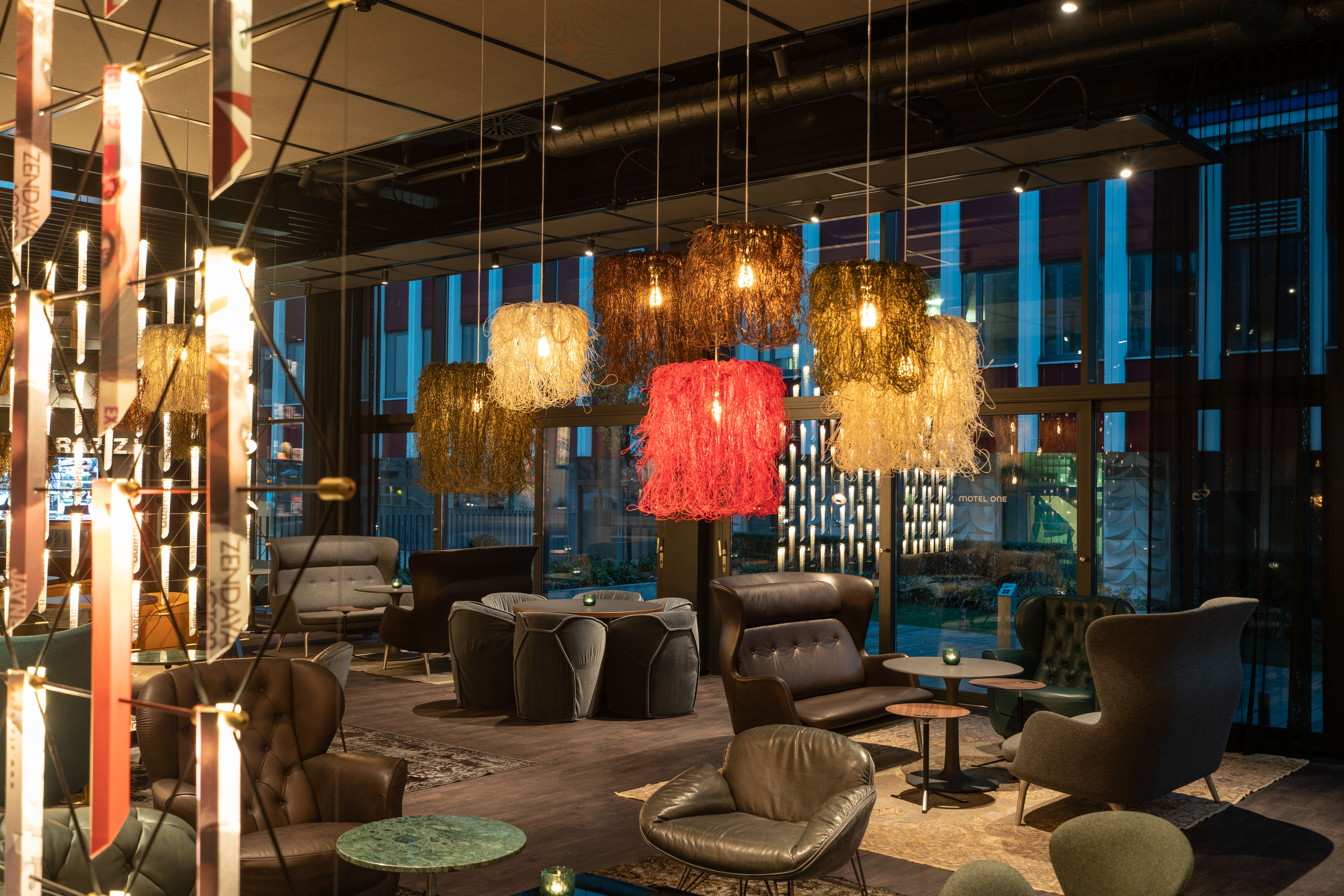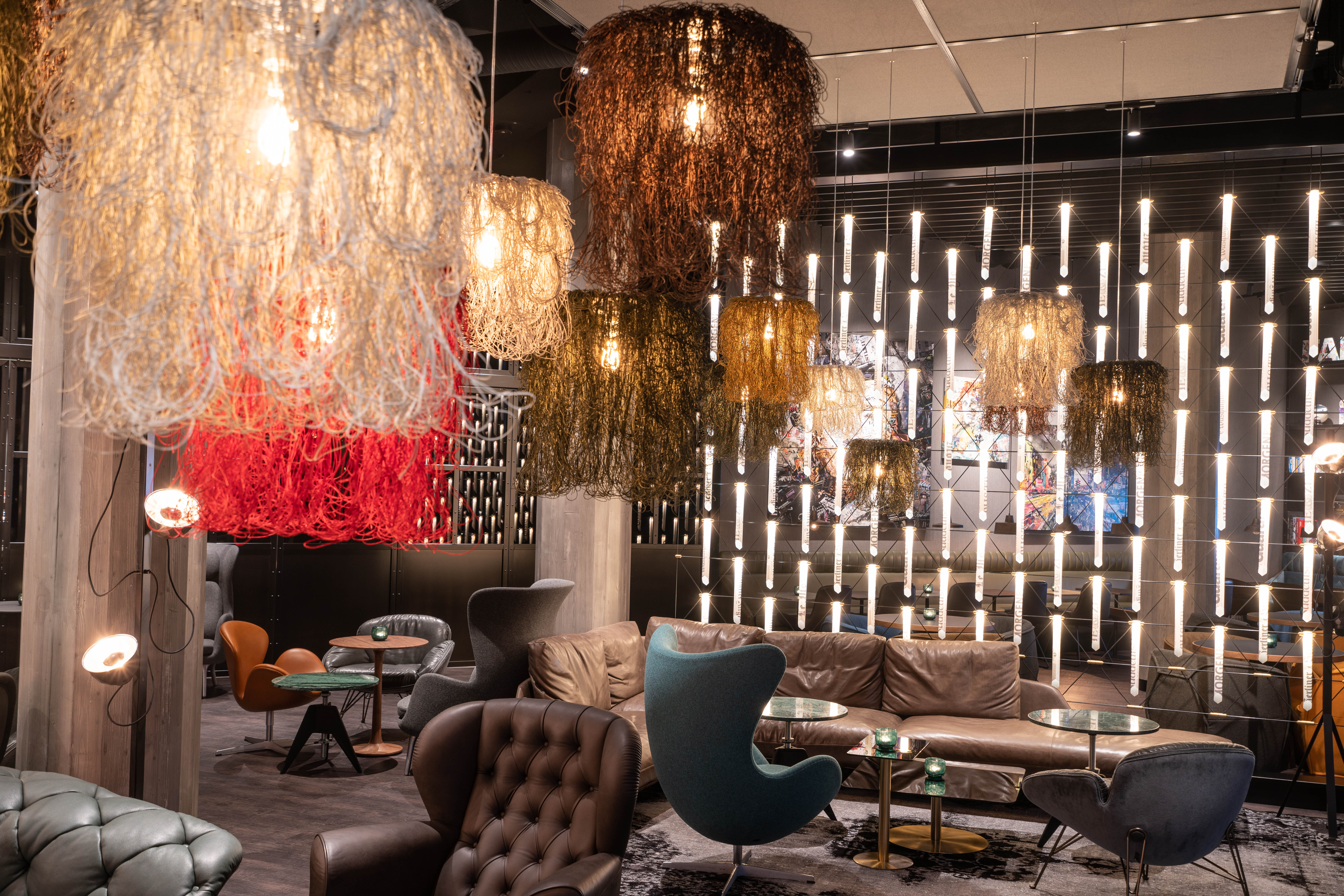 Есть три размера на выбор — подойдёт и для небольшой комнаты, и для просторного зала. Цвета тоже можно подобрать разные: от спокойных до ярких. Длина подвеса всегда одинаковая — 150 см. Благодаря этому светильник хорошо выделяется в интерьере и становится его центром.