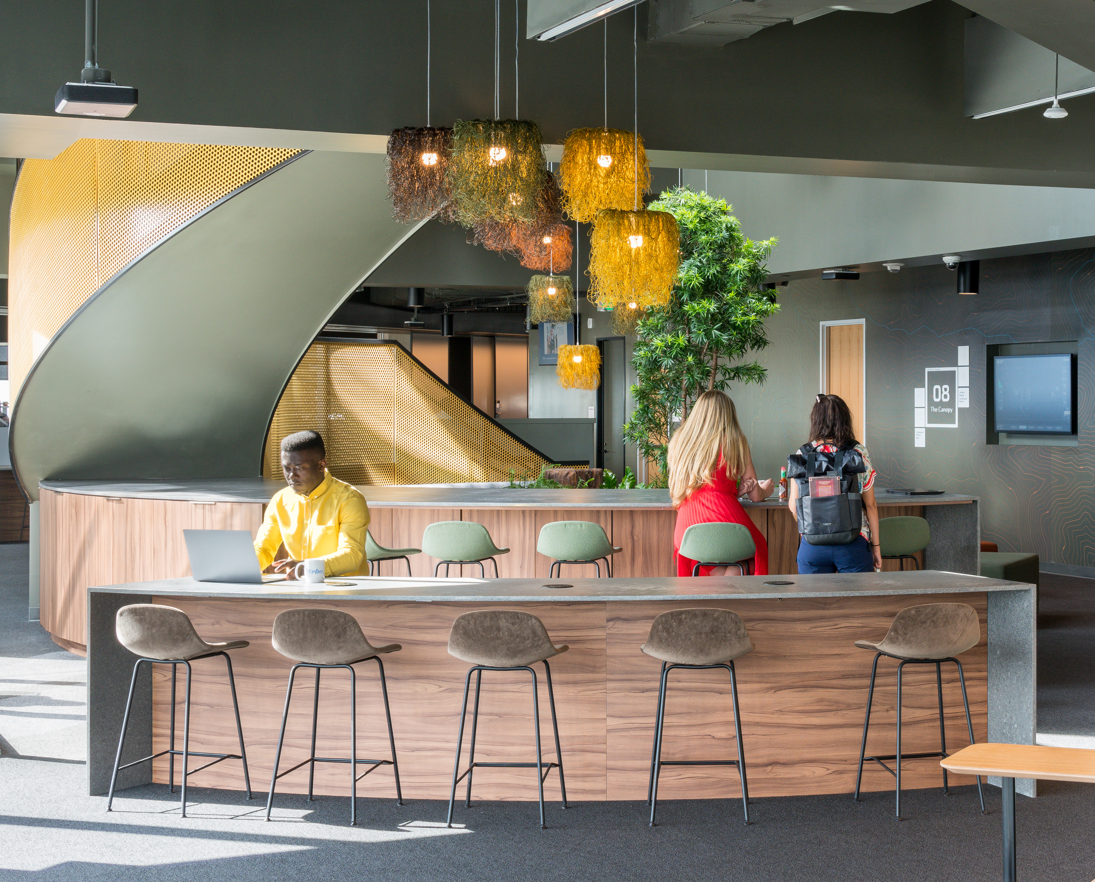 Конструкция кажется объёмной и меняется, если смотреть на неё с разных сторон. Несмотря на массивность, светильник выглядит лёгким, а его плавные линии создают ощущение равновесия.
