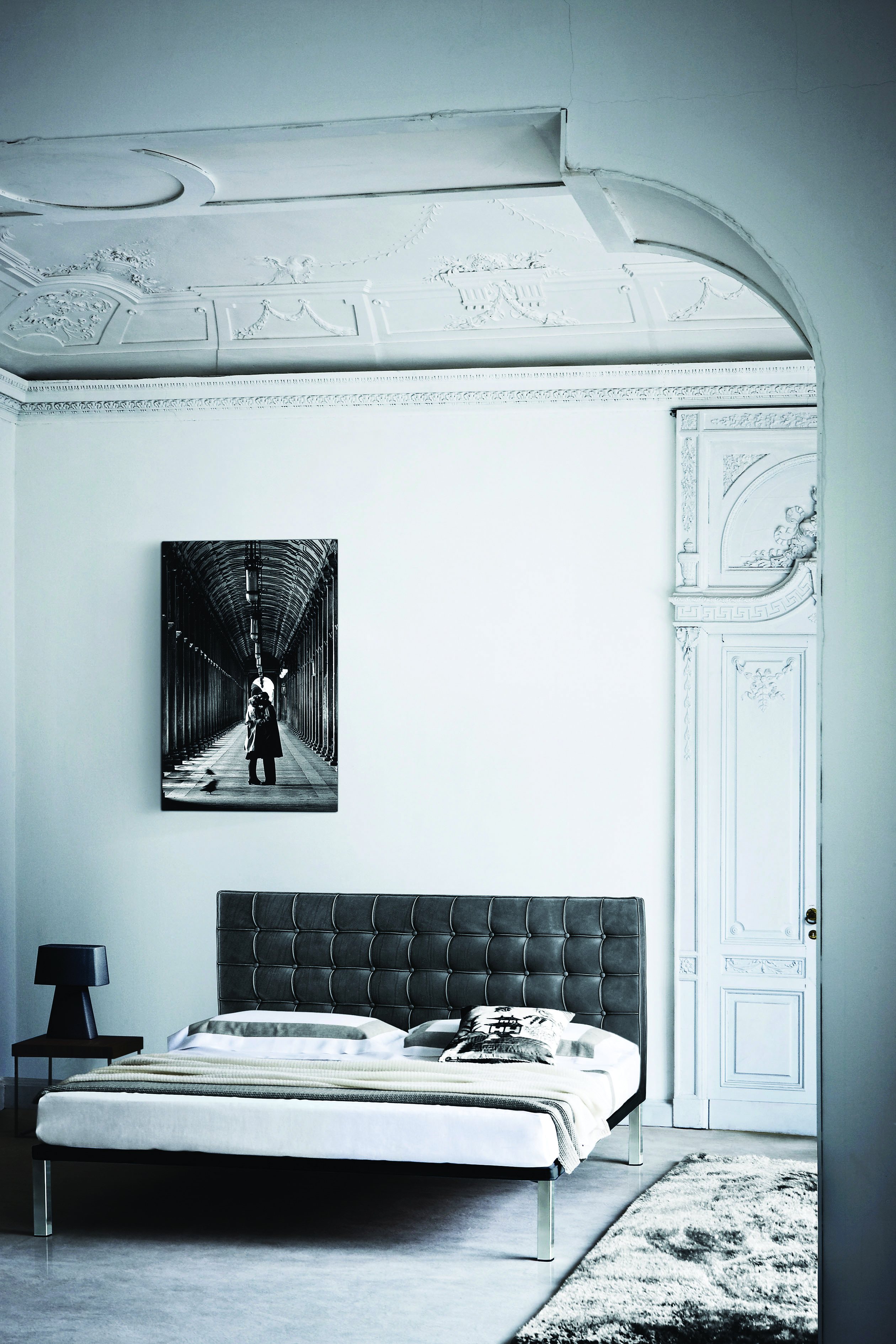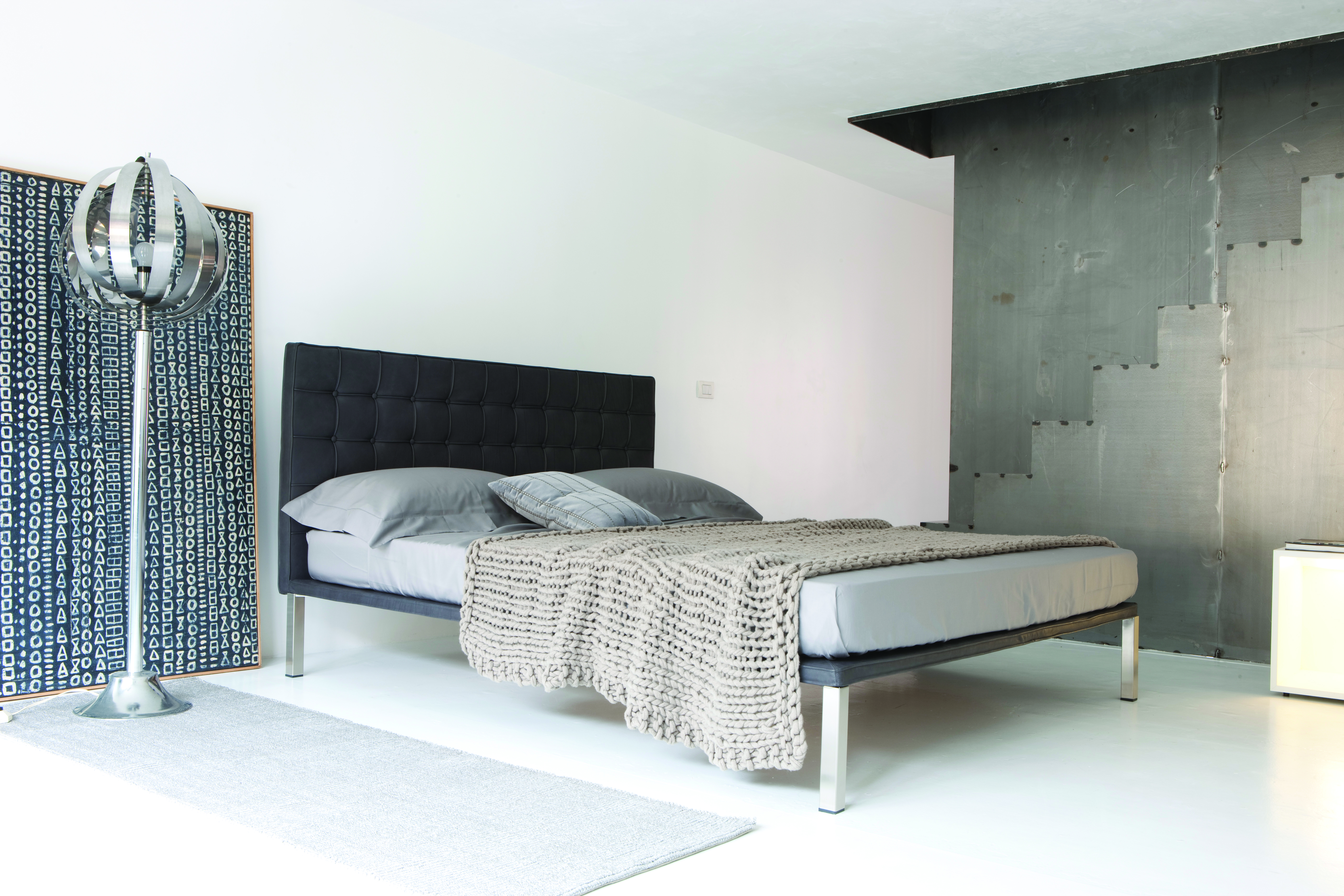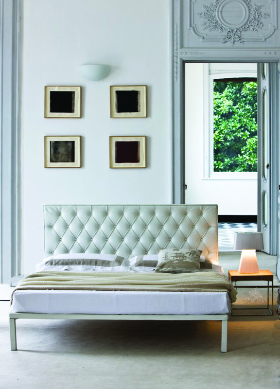 Дизайнерская кровать Caracalla с высоким мягким изголовьем в отделке капитоне. Ножки могут быть из глянцевой или никелированной стали. Основание выполнено из прочной стали с ламелями из натурального бука. Изголовье наполнено полиуретаном с волокнами полиэстера и может быть обито искусственной или натуральной кожей различных цветов. Чехол не снимается. Подробнее о вариантах обивки уточняйте у менеджеров или в PDF инструкции.