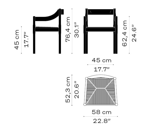 Общая высота стула составляет 76.5 см. Ширина (58 см) обеспечивает достаточно места для комфортного сидения. Эти размеры делают стул CARIMATE подходящим для различных интерьеров.