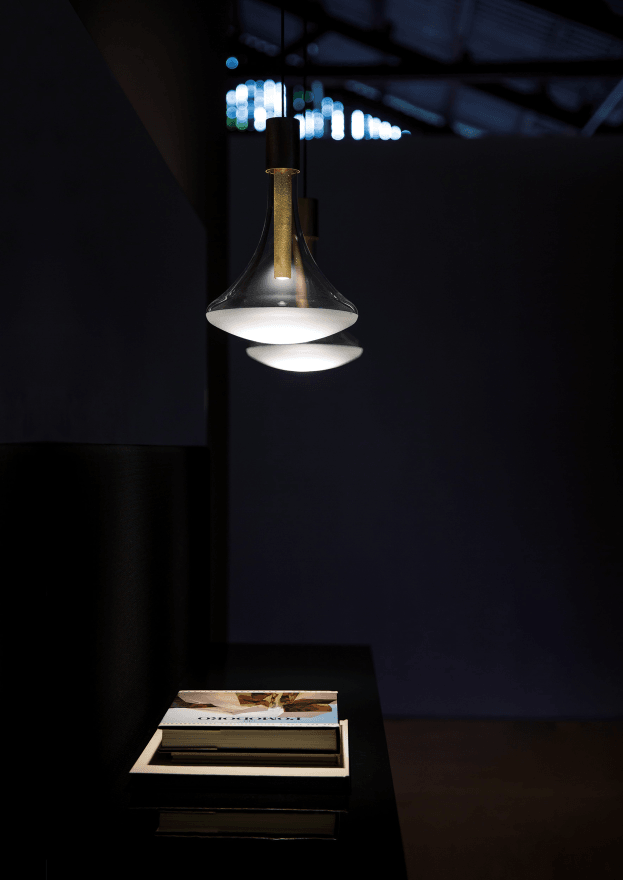 Цветовая палитра Cathode включает в себя матовый белый, полированный чёрный хром и брашированную латунь, что делает его универсальным и подходящим для любых дизайнерских решений. Эти материалы создают контраст и глубину, подчёркивая элегантность и утончённость светильника. Cathode не только освещает пространство, но и становится его неотъемлемой частью, добавляя нотку ретрофутуризма и создавая уникальную атмосферу уюта и современности.