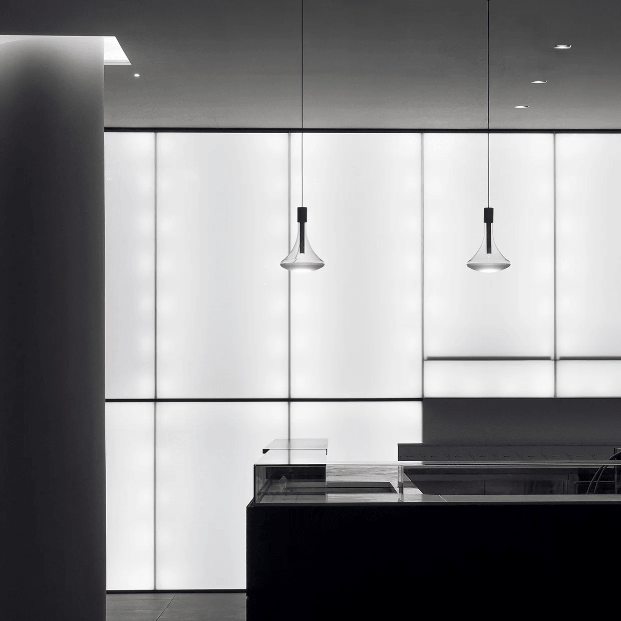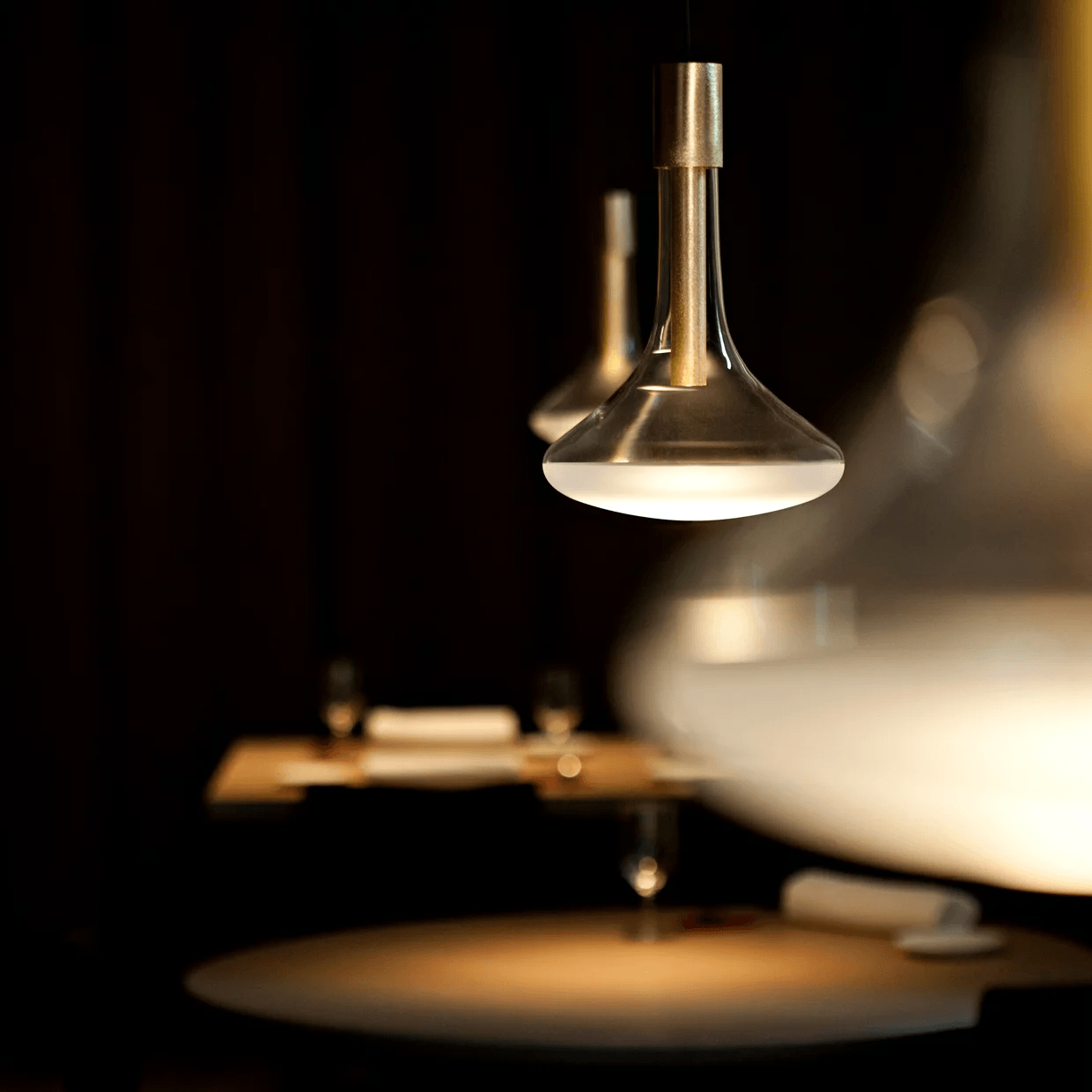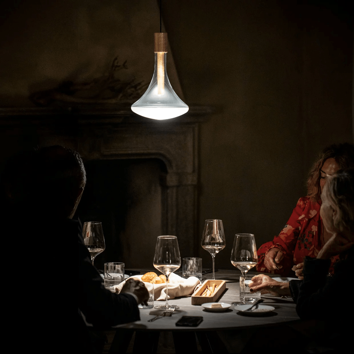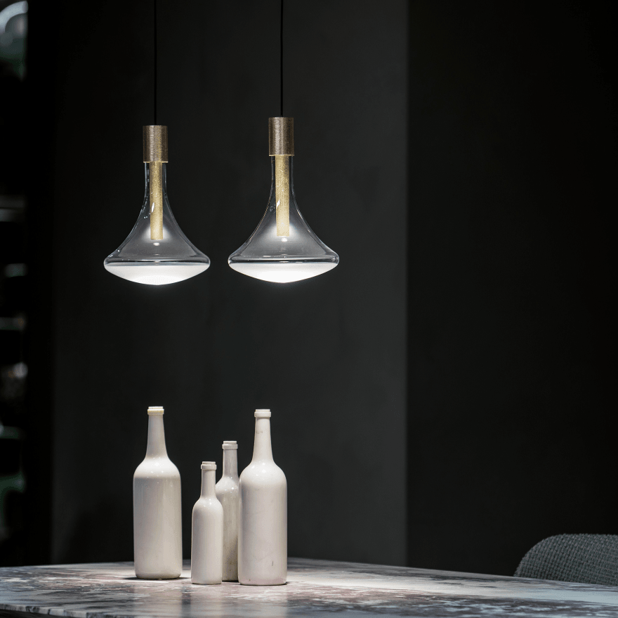 Cathode выполнен из выдувного стекла, что придаёт ему лёгкость и прозрачность. Внешне светильник напоминает катодную лампу, но его внутреннее устройство значительно отличается: он оснащён светящимися диодами, что делает его не только эстетически привлекательным, но и функциональным. Такое сочетание исторических отсылок и современных технологий создаёт ощущение связи времён, позволяя нам прикоснуться к эпохе, когда электричество только начинало проникать в повседневную жизнь.