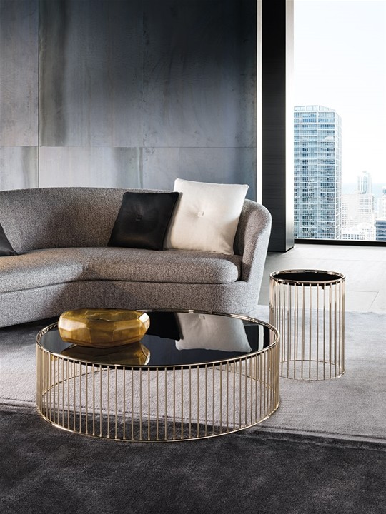 Основание столика Caulfield изготавливается из металлических прутьев. Круглая столешница выполняется из дерева или стекла и покрывается лаком. Основание может быть выполнено в цвете хром или окрашиваться в золотой. Столик Caulfield доступен в нескольких размерах. Подробнее уточняйте у менеджеров или в PDF инструкции.