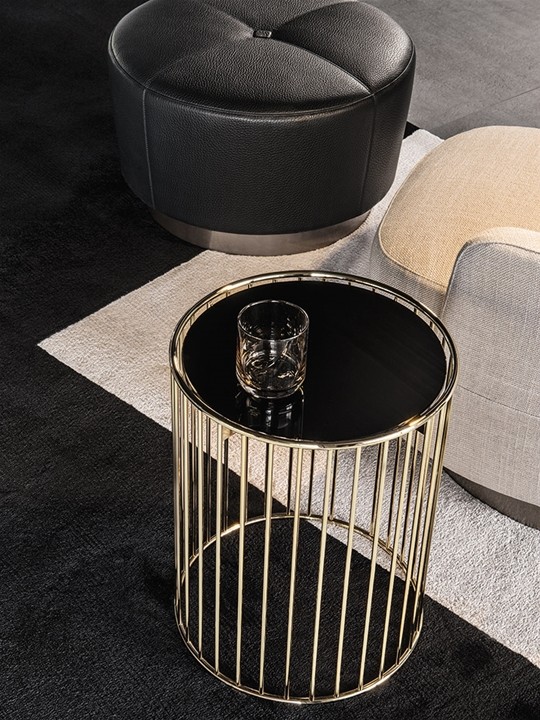 Основание столика Caulfield изготавливается из металлических прутьев. Круглая столешница выполняется из дерева или стекла и покрывается лаком. Основание может быть выполнено в цвете хром или окрашиваться в золотой. Столик Caulfield доступен в нескольких размерах. Подробнее уточняйте у менеджеров или в PDF инструкции.