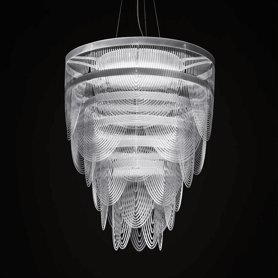Ceremony Suspension — это изысканная подвесная лампа, воплощающая в себе утонченную элегантность и романтический шарм. Ее дизайн напоминает изящные образы: струящуюся юбку, нежное жемчужное колье и легкую драпировку в зоне декольте. Лампа не только украшает интерьер, но и гармонично интегрируется в него, создавая атмосферу уюта и утонченности.