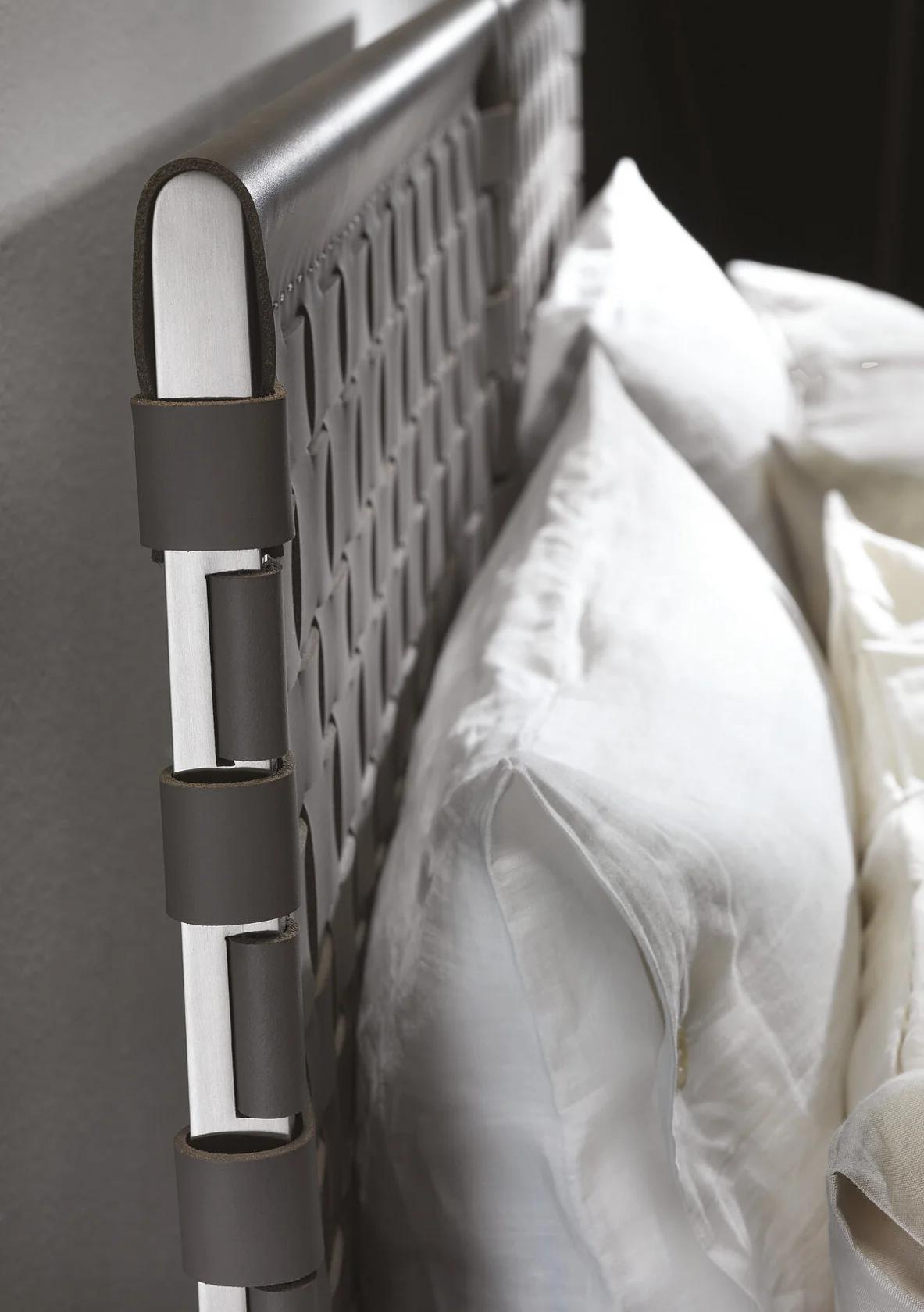 Кровать Cestone сочетает в себе современный дизайн и функциональность. Её отличает уникальный металлический каркас изголовья, который обтянут кожаным плетением, создающим шахматный узор. Этот узор придаёт кровати выразительный и эстетически привлекательный вид, а также служит интересным контрастом с мягким каркасом.