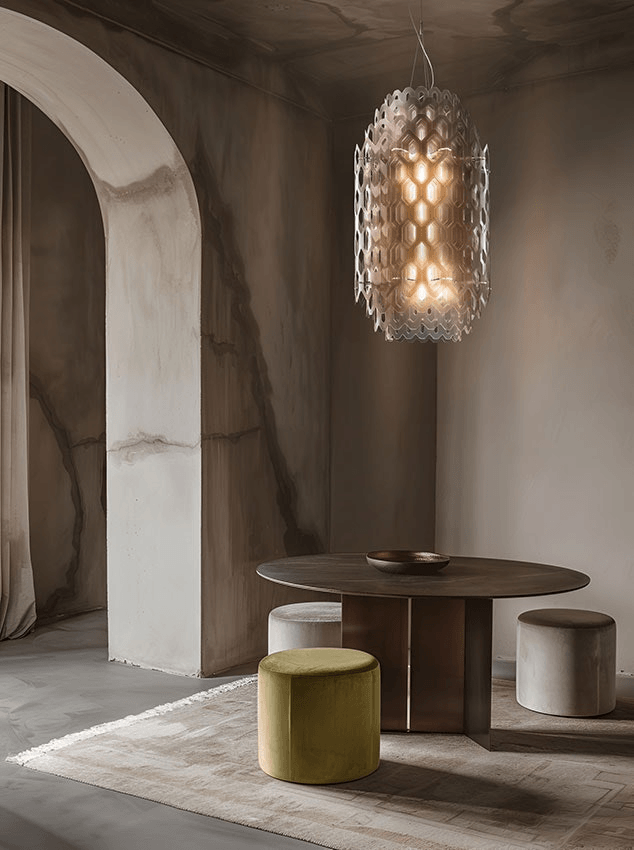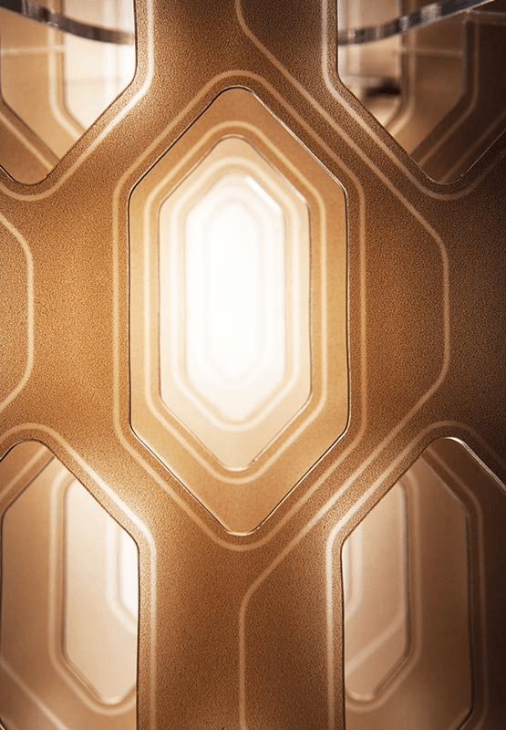 Подвесной светильник Chantal Suspension — сочетание утончённой элегантности и практичности в дизайне. Его скульптурная форма, напоминающая пчелиные соты, создаёт впечатление цельного и надёжного каркаса, который визуально кажется прочным и долговечным. Изящные, почти неощутимые элементы светильника формируют концентрические шестиугольные формы. Каждый ракурс открывает новые грани, позволяя зрителю восхищаться игрой света и тени, создаваемой этими изящными линиями.