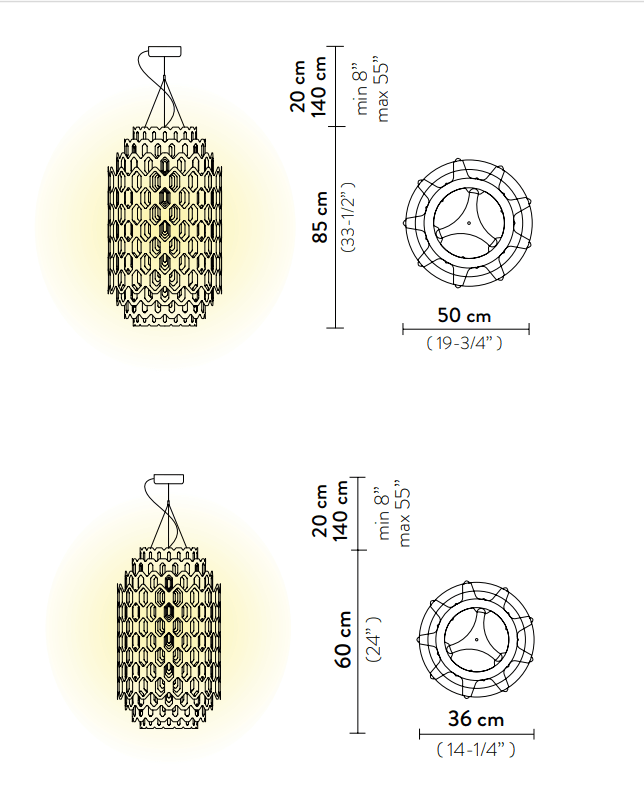 Chantal Suspension доступен в двух размерах, что делает его универсальным для любых помещений — от небольших комнат до просторных залов. Этот светильник станет не только практичным источником света, но и стильным акцентом, подчёркивающим индивидуальность вашего интерьера. Он добавит пространству нотку изысканности и утончённости, создавая атмосферу, в которой каждый элемент играет свою роль в общей гармонии.