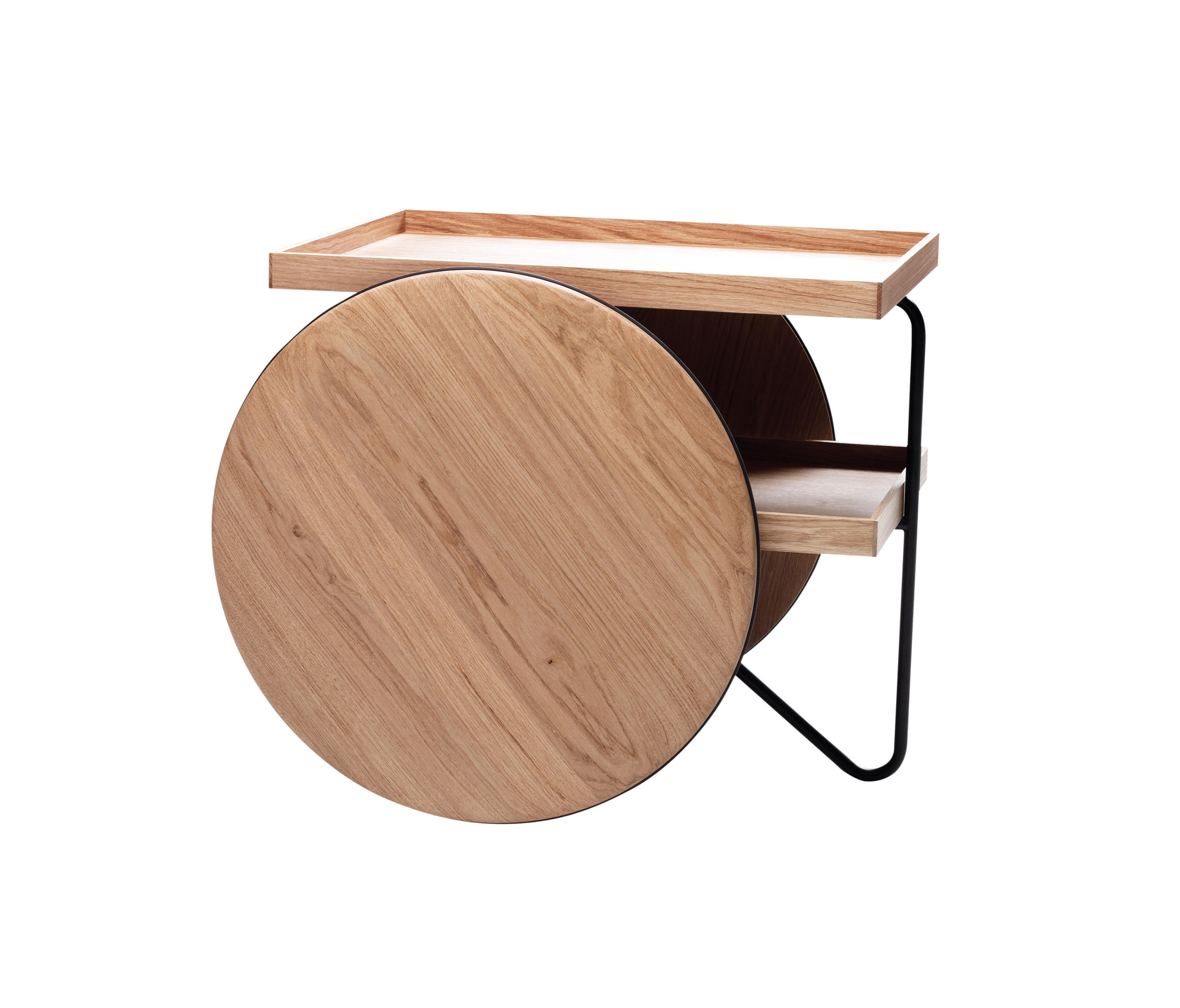 Основание стола Chariot изготавливается из прочного металла и покрывается лаком в различных цветах. Особенностью модели являются колесики, исполненные в многократно увеличенном размере. Столешница, колесики и выдвижной поднос выполнены из МДФ. Подробнее уточняйте у менеджеров или в PDF инструкции.