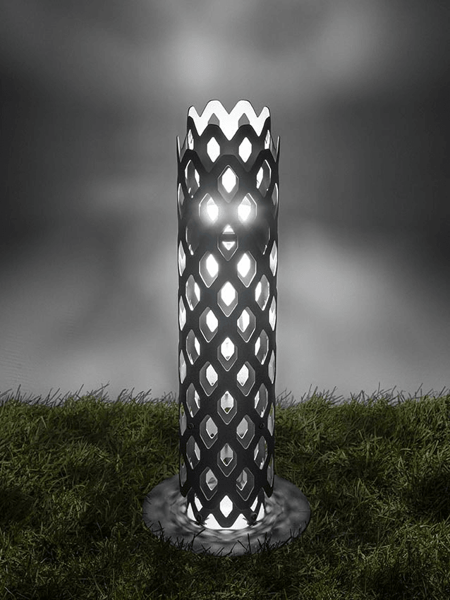 Основным элементом дизайна Charlotte Outdoor Bollard является сложный узор в виде сот, который придаёт модели особую изысканность и характер. Этот узор не только придаёт лампе уникальный внешний вид, но и создаёт гипнотические, завораживающие перспективы, даже при использовании на улице. Перфорированная поверхность шестиугольной формы направляет свет под разными углами, что создаёт эффект многогранности и динамичности. Этот визуальный трюк делает пространство вокруг лампы более интересным и привлекательным.