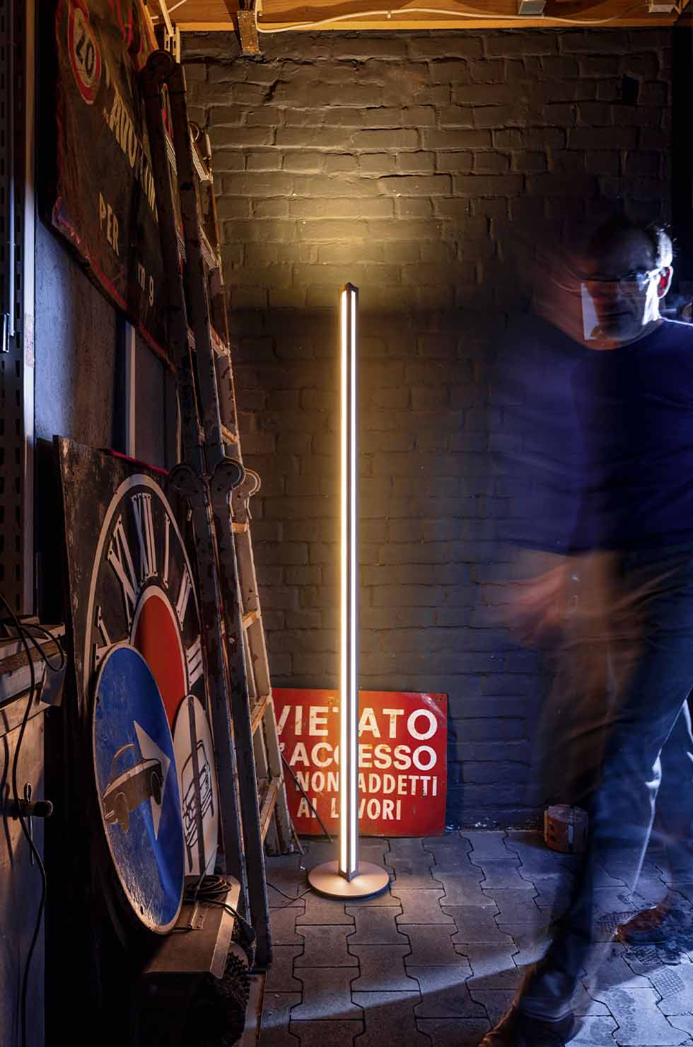 Chiaroscura представляет собой минималистичный скульптурный корпус для всестороннего освещения, переосмысливающий классический светильник. Его ключевая инновация заключается в треугольной профильной структуре, которая перераспределяет световой поток по двум направлениям, значительно расширяя функциональность.