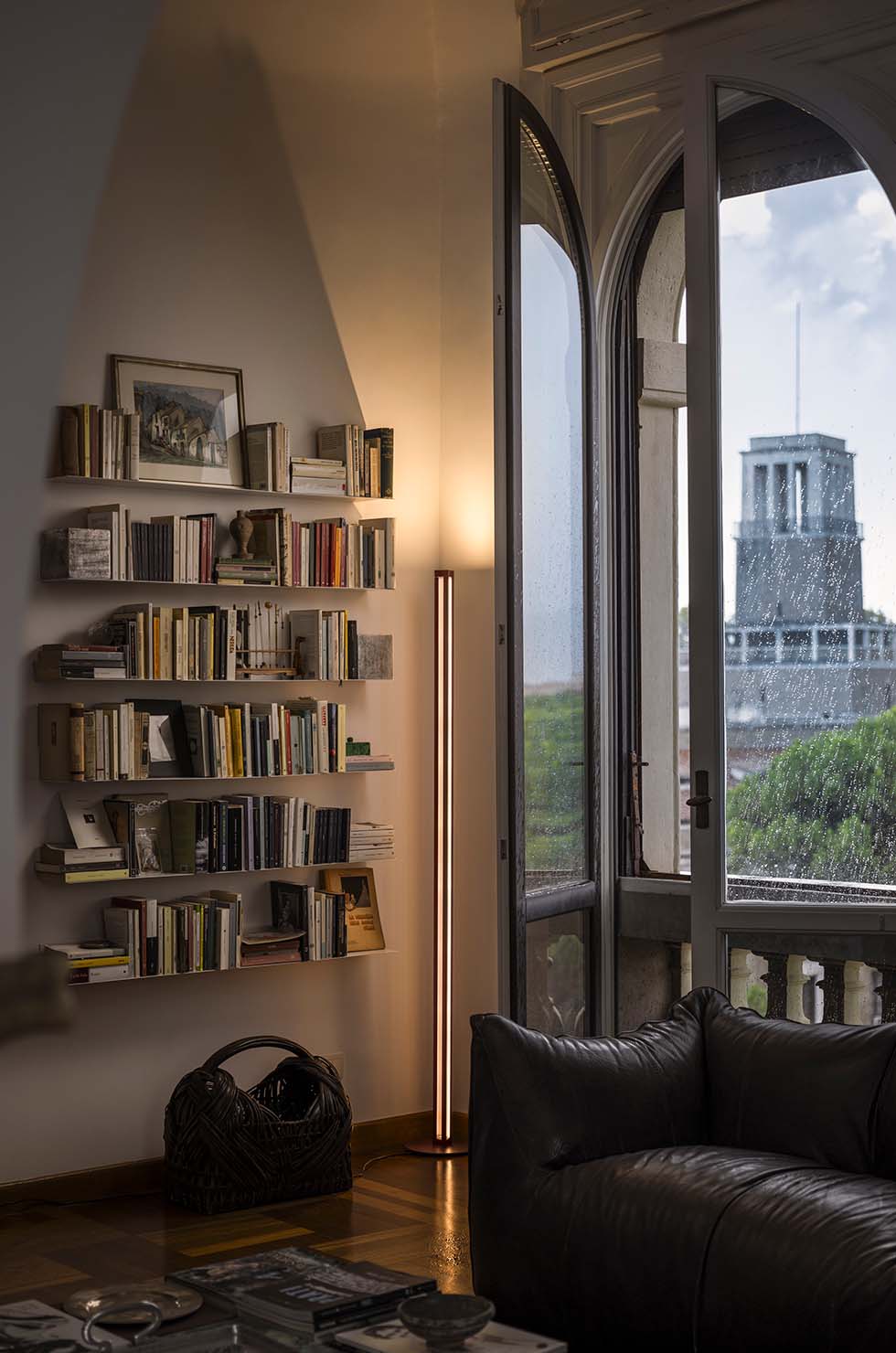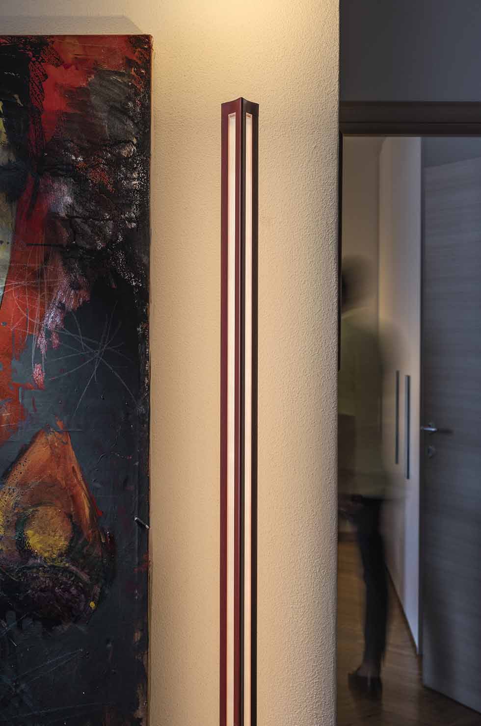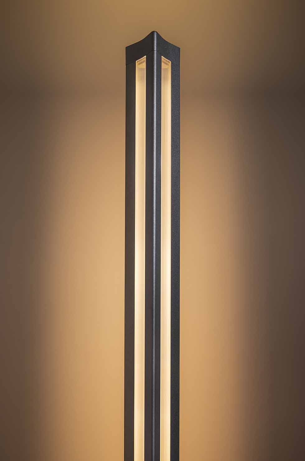 Треугольная форма работает как оптический рассеиватель: одна наклонная грань направляет мягкий отраженный свет в стороны, создавая комфортное фоновое освещение и устраняя резкие тени. Верхняя грань при этом излучает прямой свет вверх, подсвечивая потолок и создавая эффект визуального увеличения пространства за счет отраженного света.
