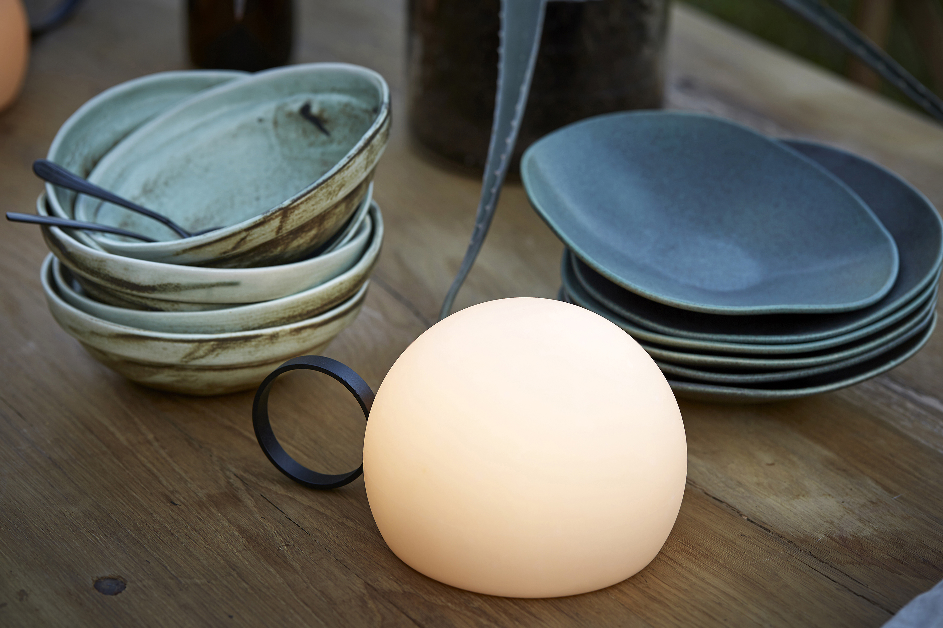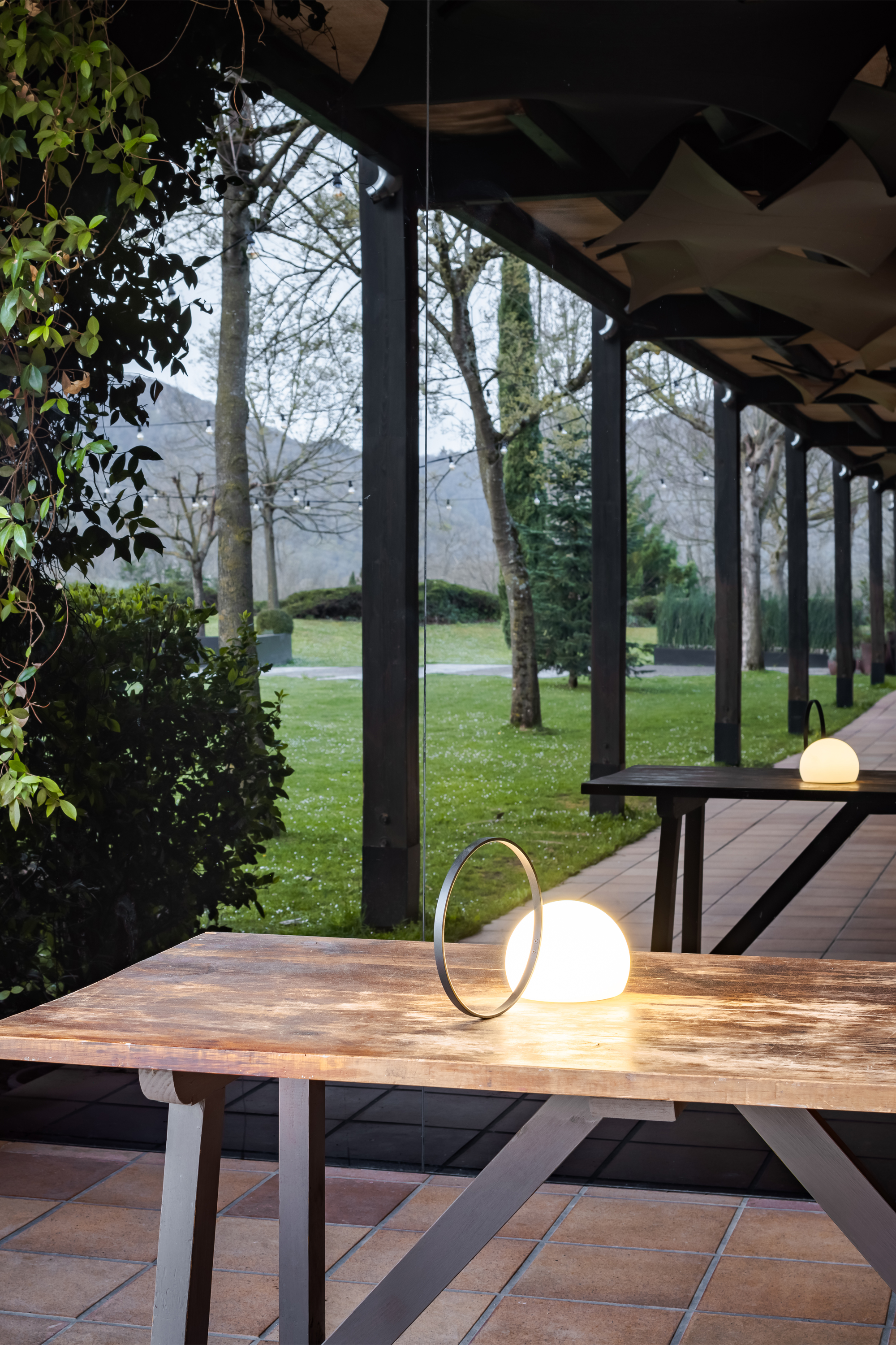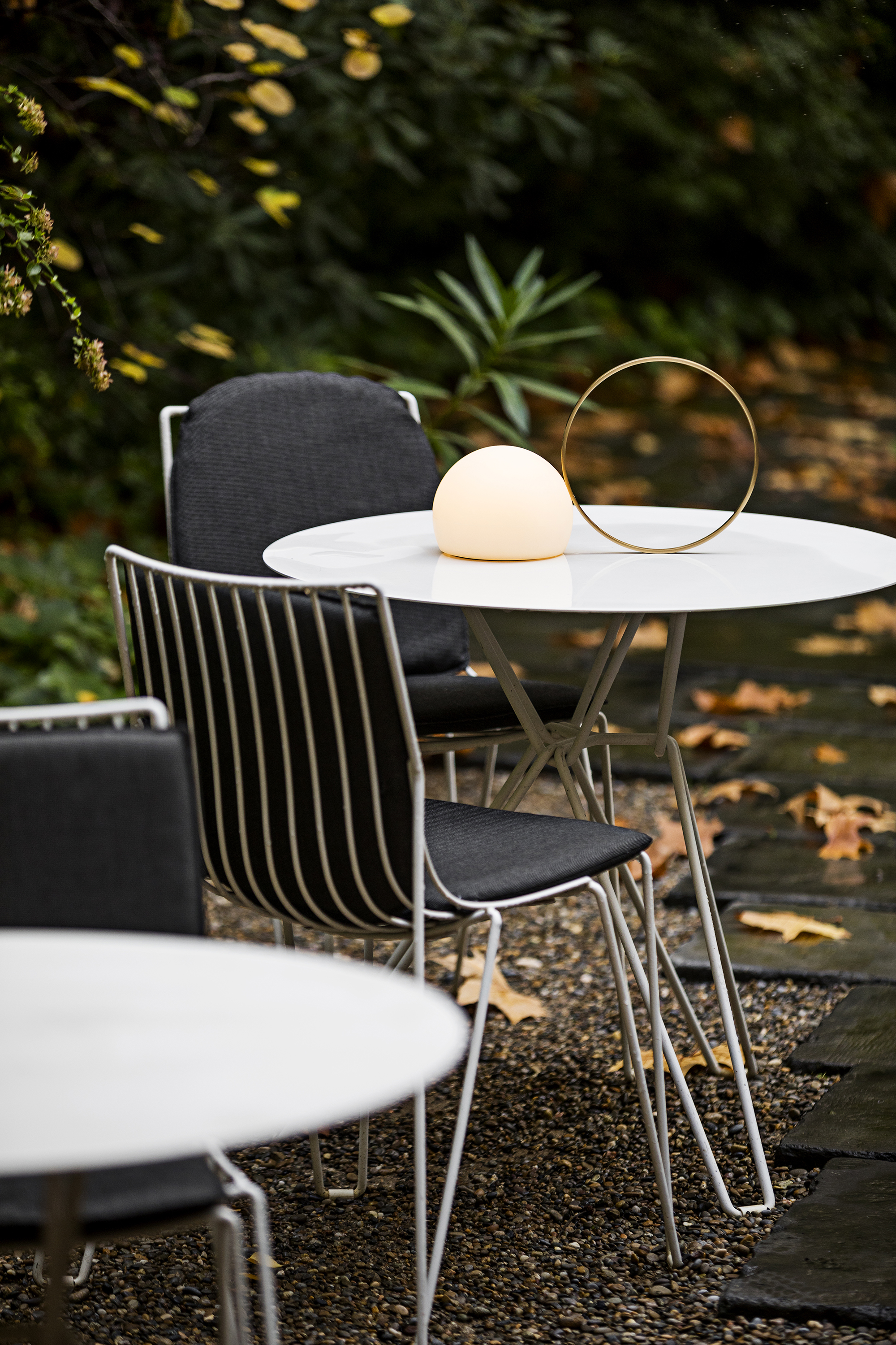 Портативный настольный светильник Circ Table portable — удобное решение для дома и улицы. Его абажур сделан из полупрозрачного бежевого полиэтилена, который мягко рассеивает свет. Металлическое кольцо придаёт изделию стильный и прочный вид.