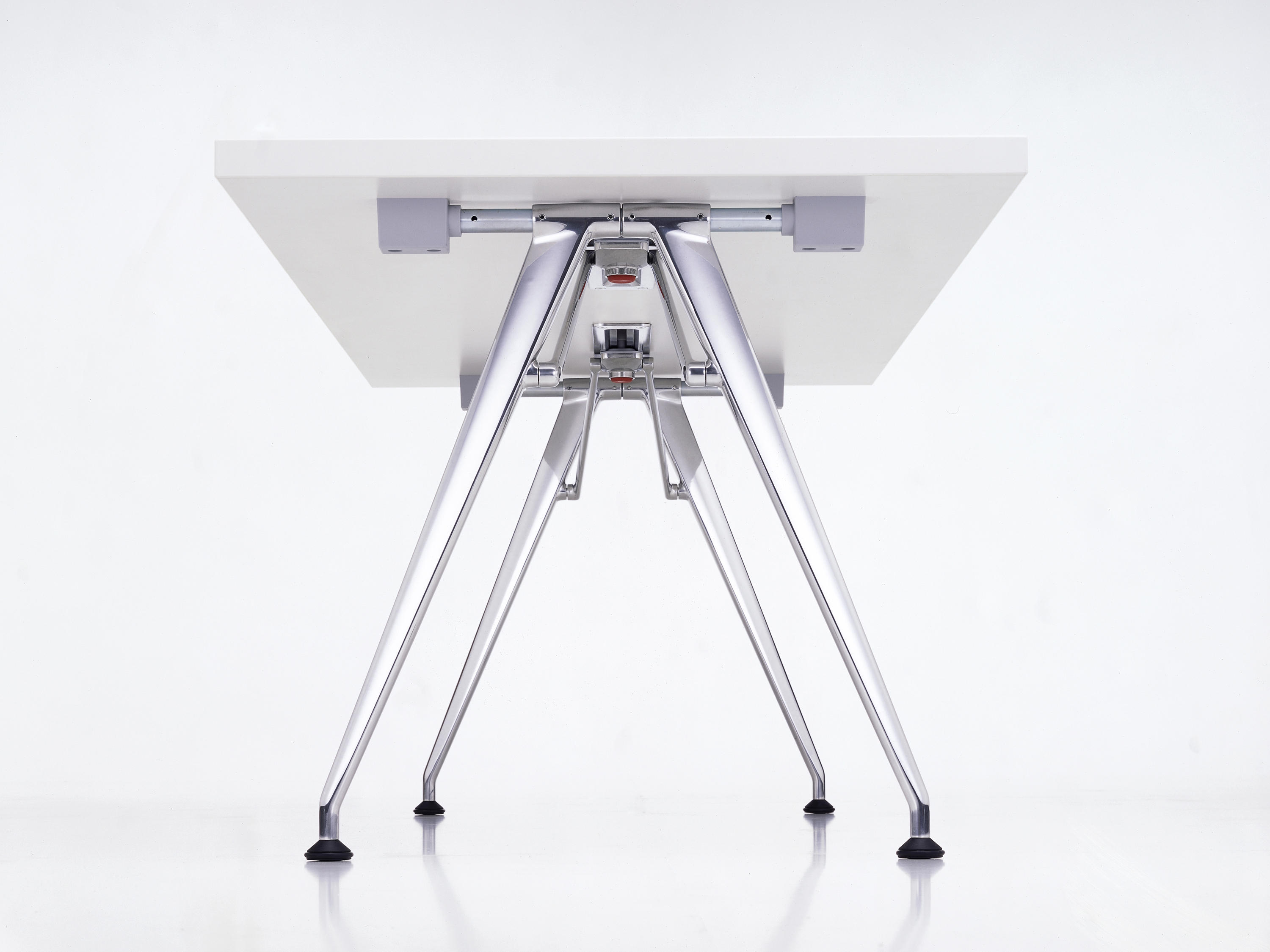 Click — элегантный, функциональный и надежный стол, который можно сложить, просто нажав на кнопку. Благодаря плоскому складному механизму и элегантным линиям ножек, Click не похож на обычные складные столы. Ножки стола выполнены из полированного алюминия, столешница — из меламина. Модель доступна в трех размерах. Для дополнительного удобства существует специальная тележка, на которую можно складывать до 10 столов одновременно. Более подробную информацию и варианты расцветок можно уточнить у менеджера.