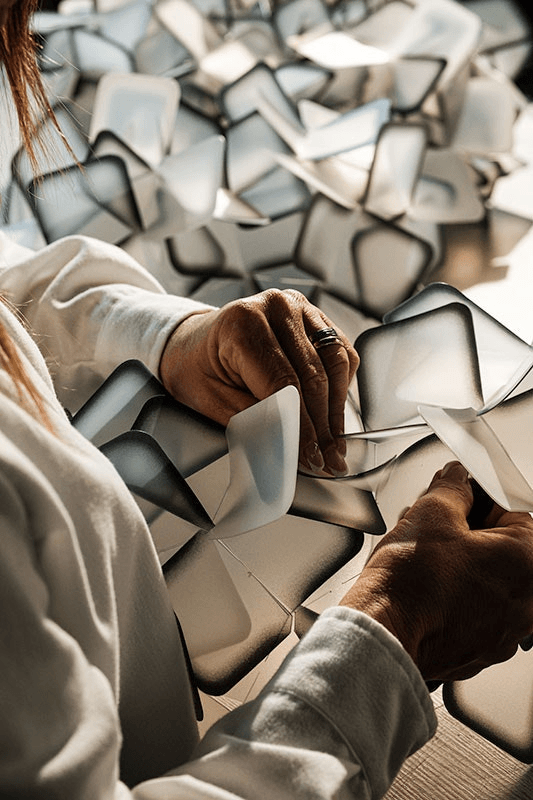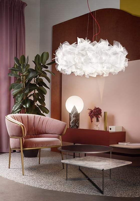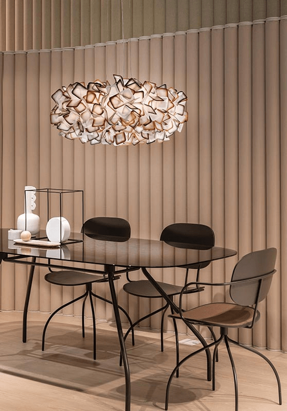Особое внимание в дизайне Clizia уделено игре света и тени. Его полупрозрачные, почти эфемерные формы рассеивают свет, создавая мягкие, тёплые блики на стенах и потолке. Светильник не только освещает пространство, но и украшает его, превращая каждый уголок в живописный пейзаж. Это особенно актуально для небольших помещений, где Clizia создаёт иллюзию простора, визуально расширяя границы комнаты.