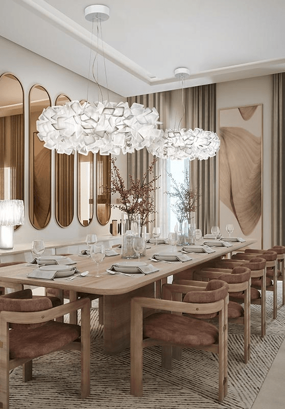 Clizia Suspension наполняет пространство мягким, рассеянным светом, создавая уютную и расслабляющую атмосферу. Его тёплые оттенки света способствуют снижению напряжения и повышению комфорта, что особенно важно в современном мире, где мы проводим много времени в помещениях. Светильник идеально подходит для зон отдыха, где важен не только свет, но и эмоциональная составляющая интерьера.