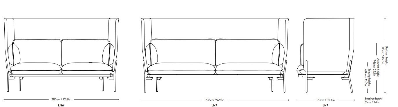 Cloud — уютный и элегантный диван с высокой перегородкой. Ножки дивана изготавливаются из крепкой стали и покрываются лаком в трех вариантах цвета: черный, хром или бронза. В качестве наполнителя используется пенополиуретан HR. Для обивки применяется ткань любой доступной расцветки. Диван дополняется двумя подушками, которые наполняются пухом. Подробные характеристики, включая доступные расцветки и материалы, уточняйте у менеджеров.
