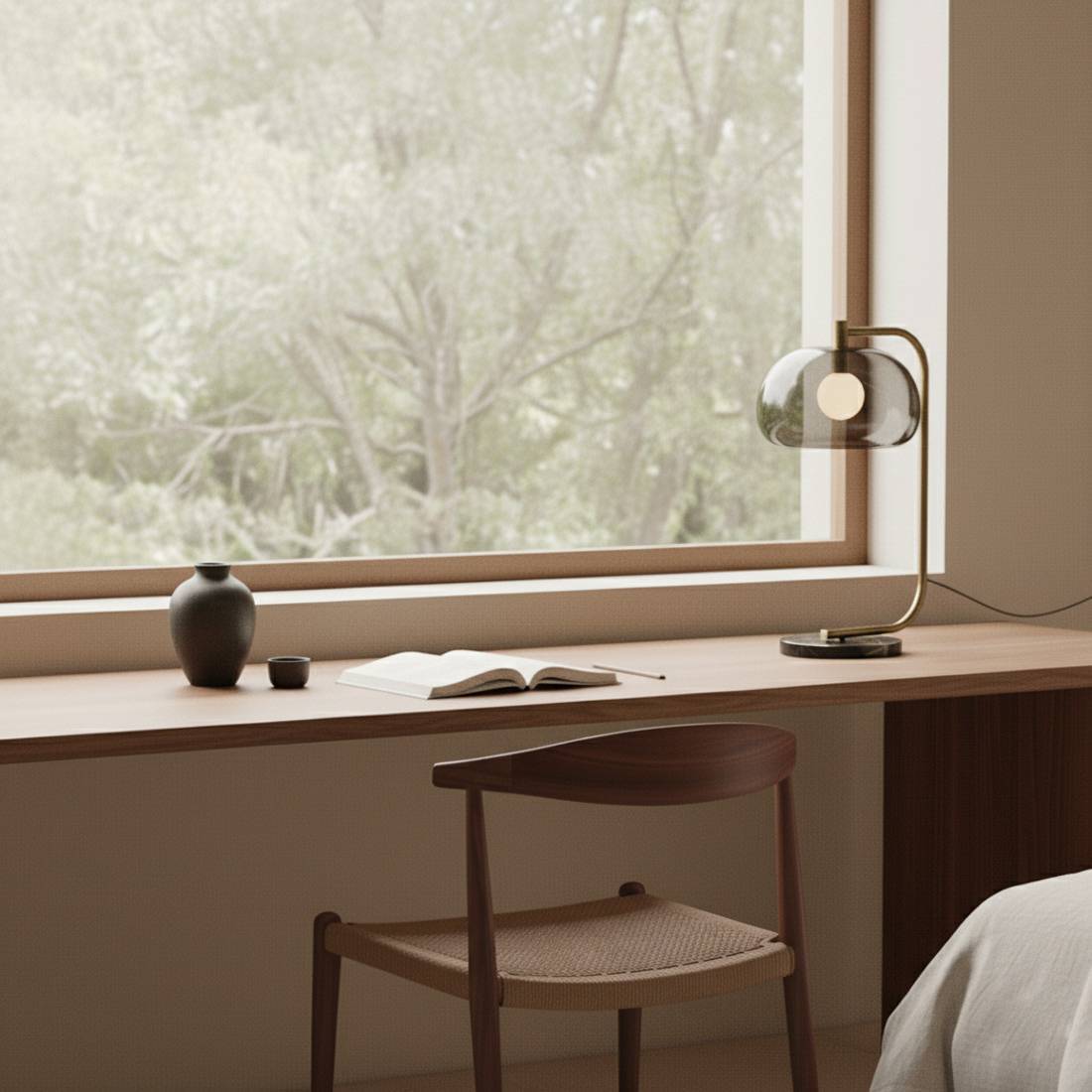 Светодиодный источник света G9 мощностью 5 Вт с регулируемой яркостью и тёплым белым светом (2700 К) защищён внутренней сферой из опалового стекла. Это обеспечивает уютное рассеянное освещение без бликов. Идеально подходит для прикроватных тумбочек, спален, гостиных или зон для чтения.
