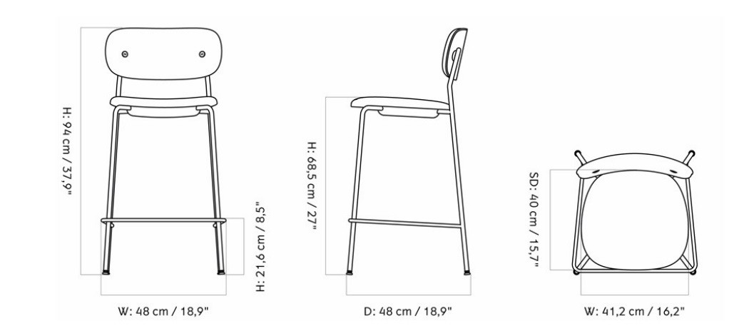 Стул CO COUNTER CHAIR, UPHOLSTERED идеально подходит для современных кухонь и баров. Его размеры тщательно продуманы для оптимального удобства.