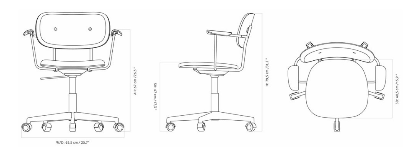 CO TASK CHAIR обладает тщательно продуманной эргономикой. Размеры стула оптимальны для длительной работы. Высота составляет 79.5 см. Ширина и глубина – 65.5 см. Высота сиденья – 47 см. Глубина сиденья – 40.5 см. Высота подлокотников – 67 см. Таким образом, стул обеспечивает поддержку и комфорт в течение всего дня.