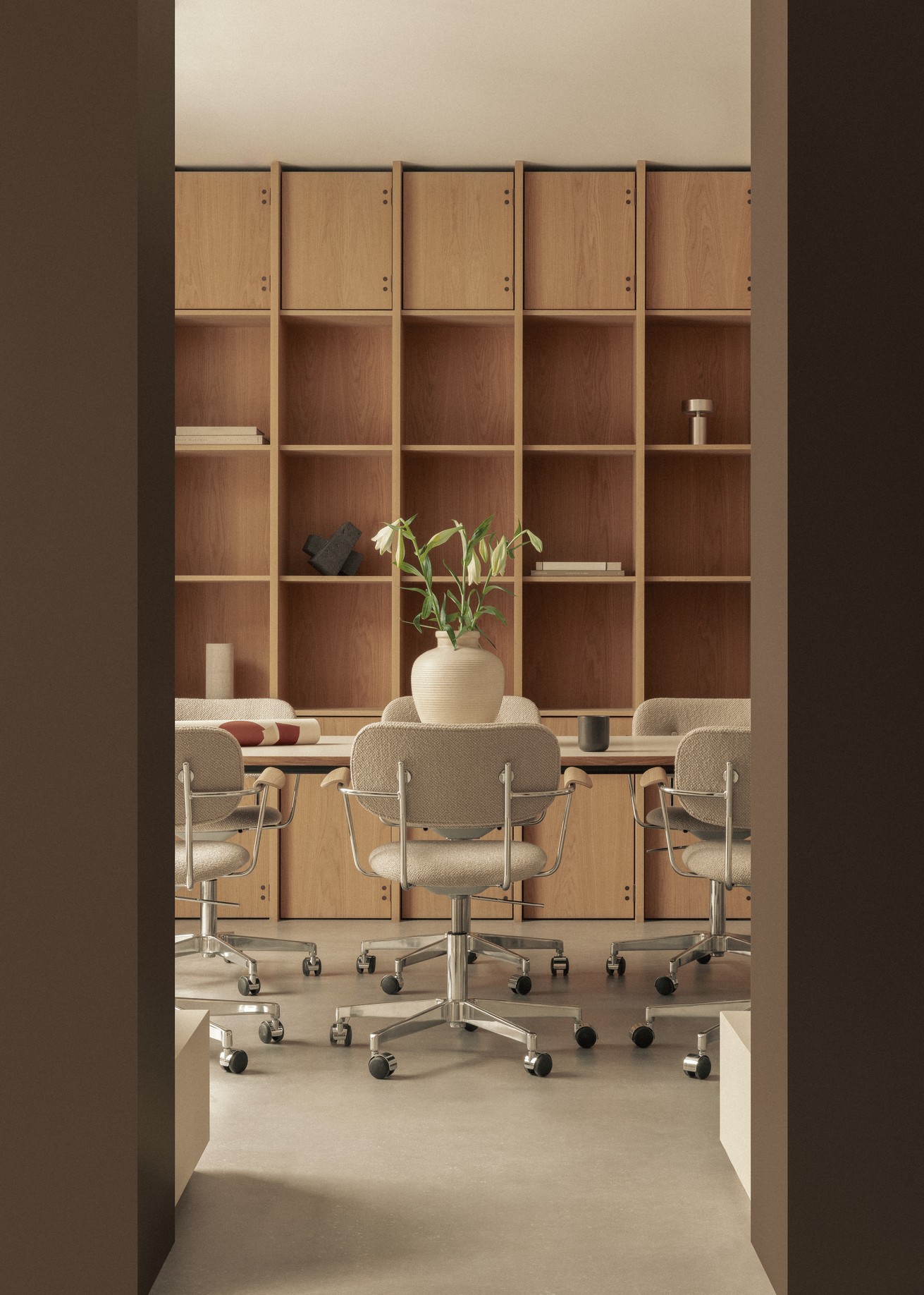 Основание стула – это пятилучевая крестовина из полированного алюминия. Она гарантирует устойчивость и надежность. Колесики обеспечивают мобильность и легкость перемещения. Следовательно, вы сможете легко перемещаться по рабочему пространству, не вставая со стула.